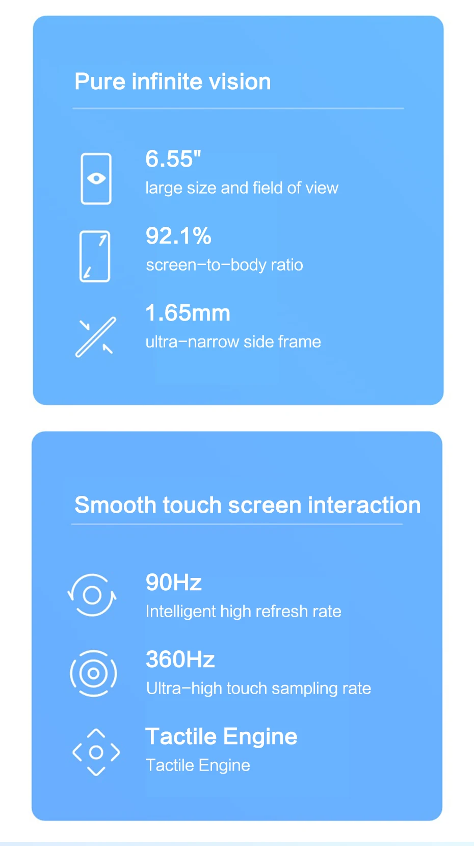 6,55 дюймов, 103,6 см2 (~ 88.3% соотношение экрана к корпусу)