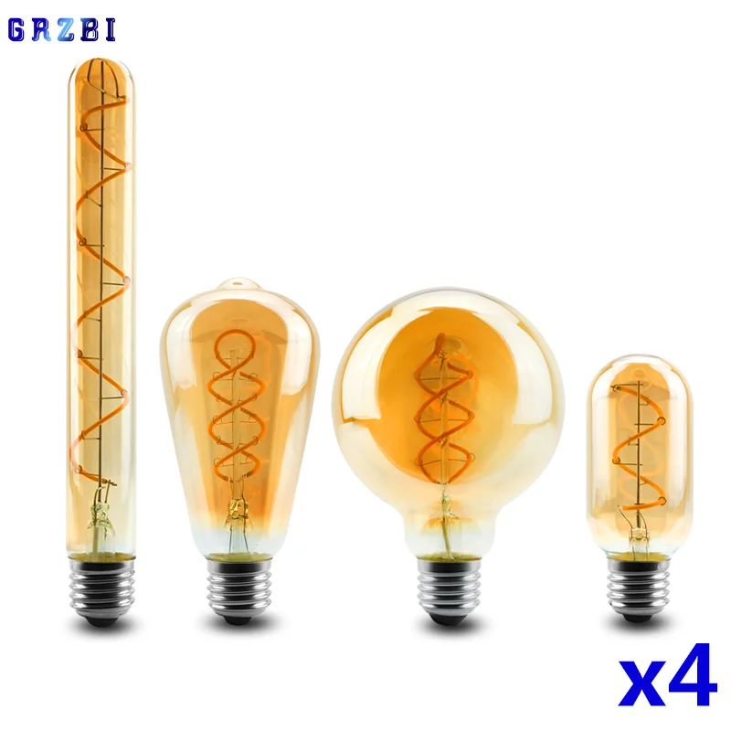 Светодиодная лампа накаливания в стиле ретро, 4 шт.лот, A60, C35, ST64, T45, G80, G95, G125, T1225, 4 Вт, E27, 220 В, Светодиодная лампа накаливания 2200K с теплым желтым светом