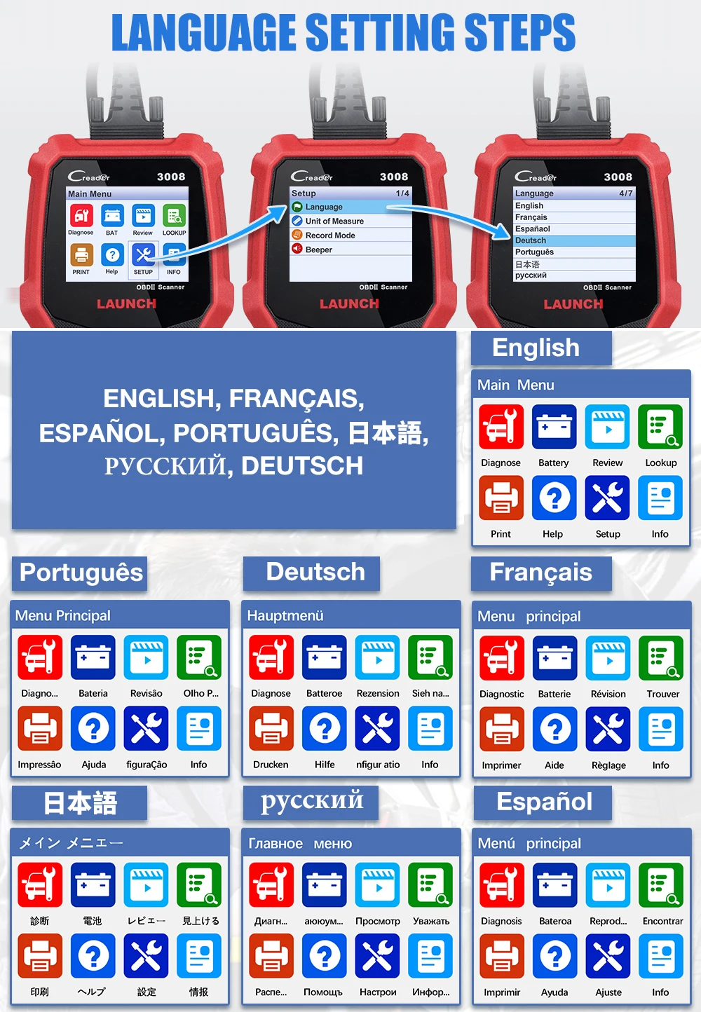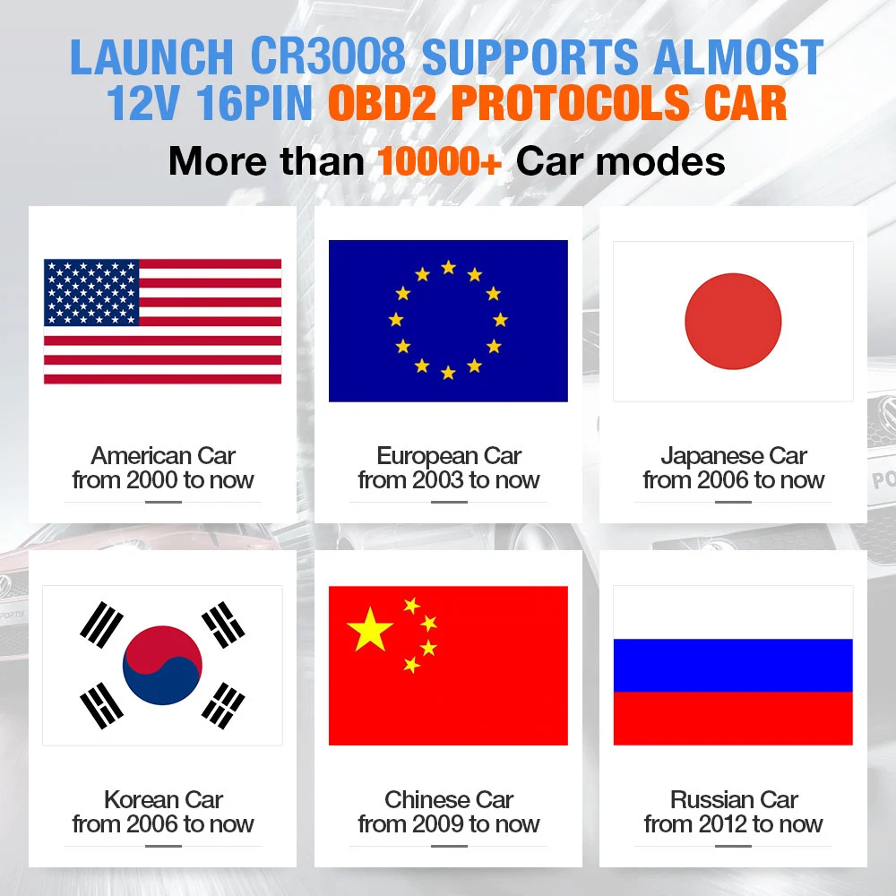 Высококачественная универсальная Версия LAUNCH CR3008 поддерживает транспортные средства