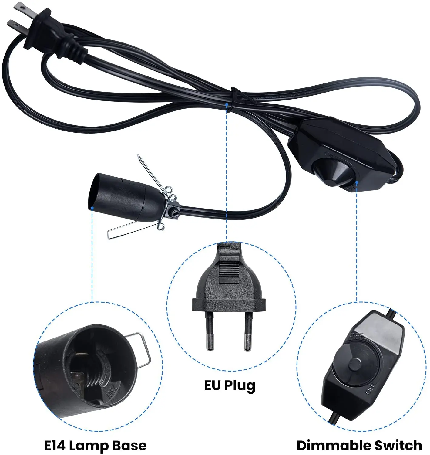 Цоколь для лампы E14, 1,8 м, держатель кабеля питания, Электрический силовой диммер, провод с переключателем для гималайской соляной лампы, вилка USEU