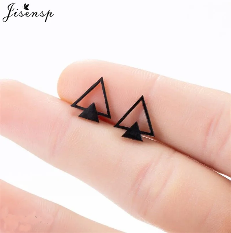 Серьги-гвоздики из нержавеющей Серьги из стали, ювелирные украшения для пирсинга черного цвета с геометрическим дизайном в стиле панк, круглой Луной и звездой