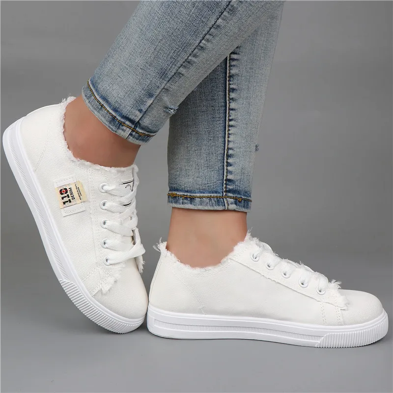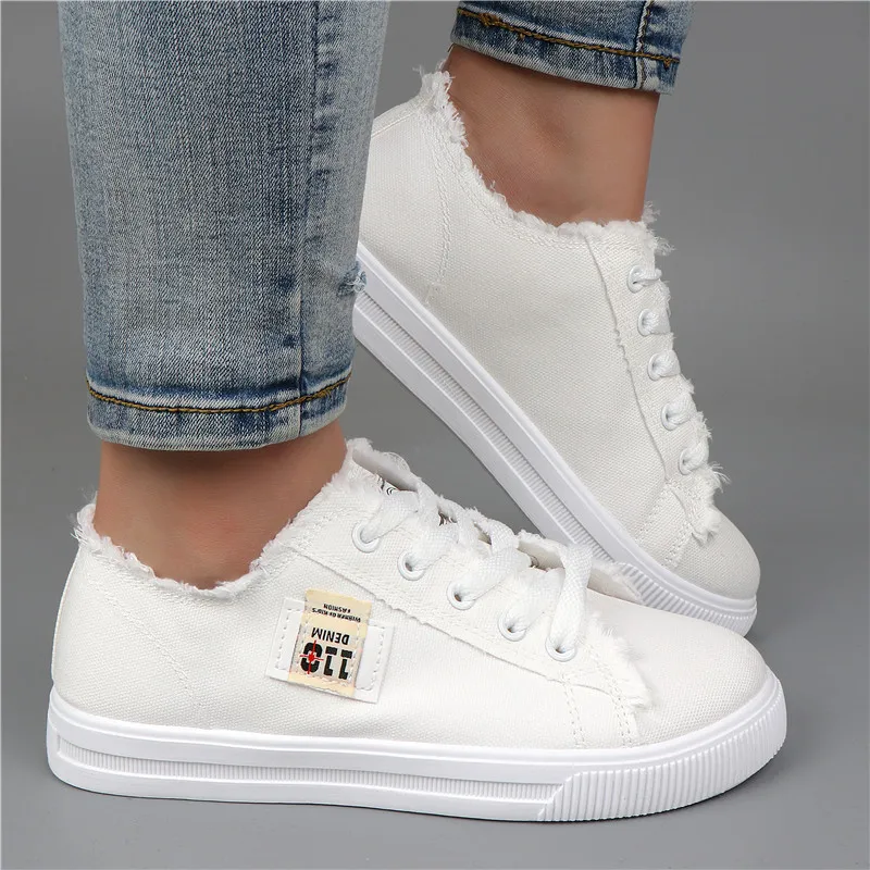 Кеды женские из денима, Вулканизированная подошва, повседневная обувь для тренировок, на шнуровке, плоская подошва, белые, на лето
