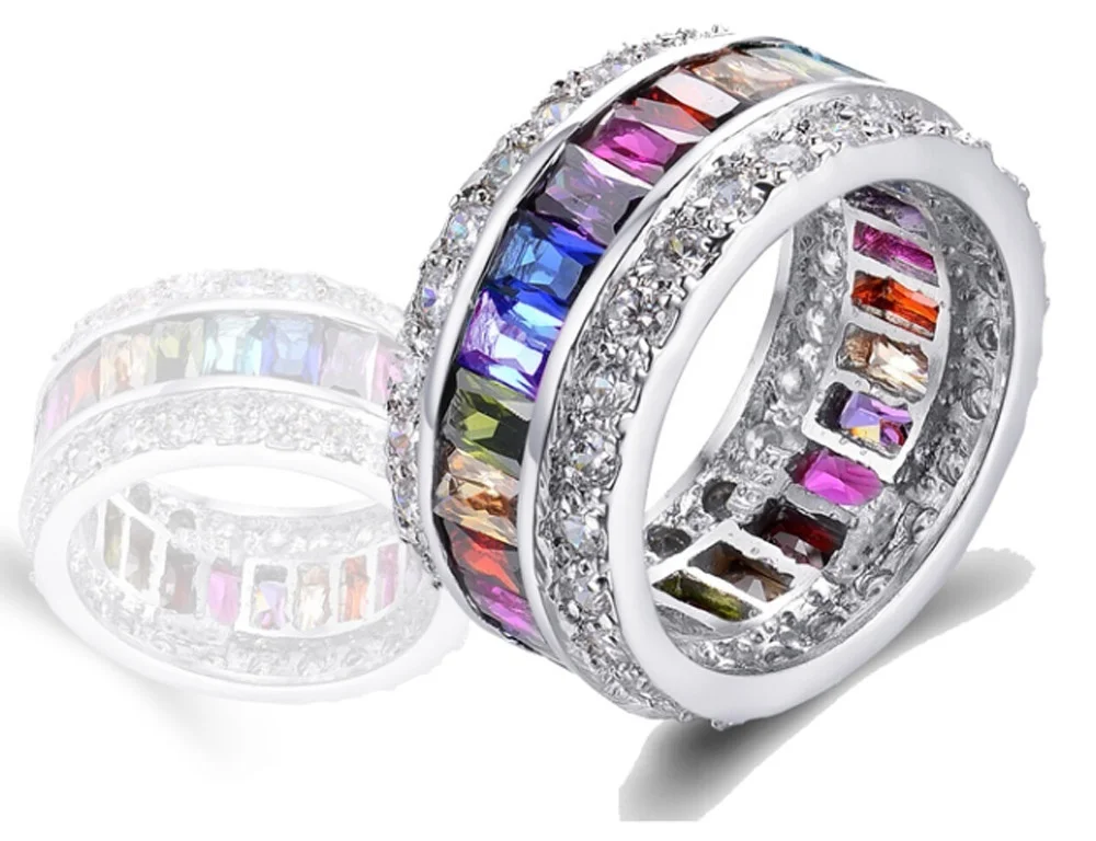 Модные женские кольца с цветными кристаллами, ювелирные изделия, Свадебные обручальные кольца, подарок на день рождения для девочек, кольца