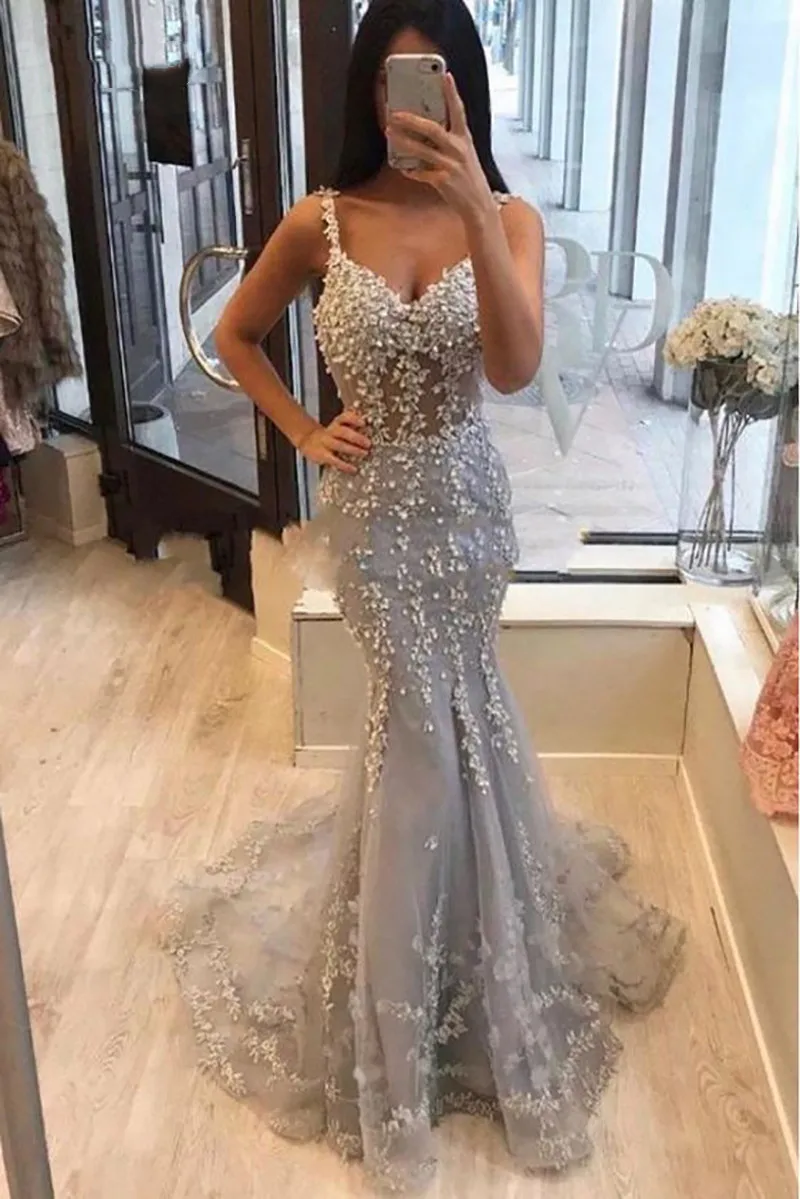 Блестящие вечерние платья-русалки с блестками, кружевные вечерние п...