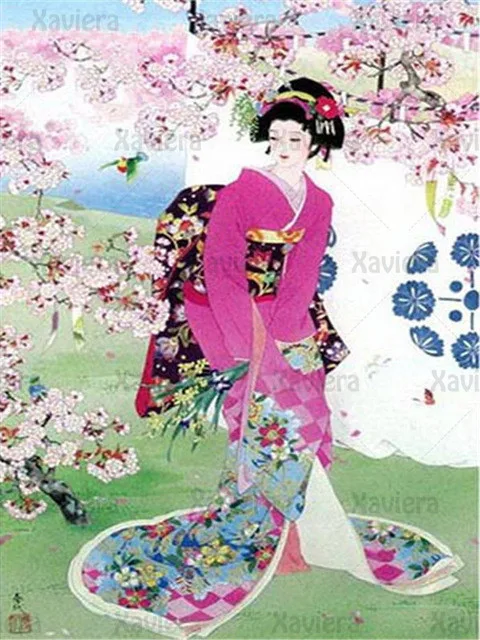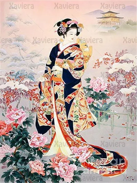 Алмазная картина сделай сам в японском стиле красивая молодая девуш...
