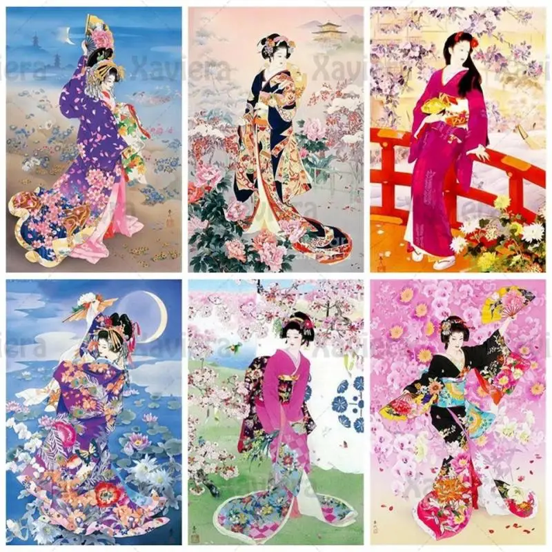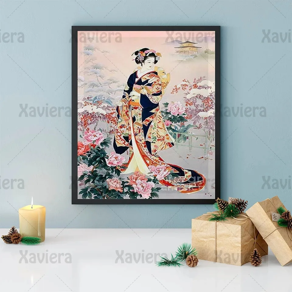 Картина с японским портретом, алмазная вышивка стразы, наборы для вышивки крестиком, мозаика 5D, алмазная живопись сделай сам, кимоно гейши, женщина