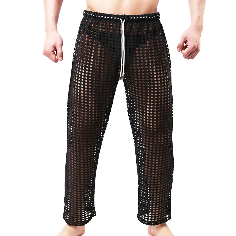 Мужская пижама, Мужская сексуальная пижама, брендовая одежда, повседневная домашняя одежда, полые сетки, сексуальные мужские пижамы, длинные штаны, леггинсы