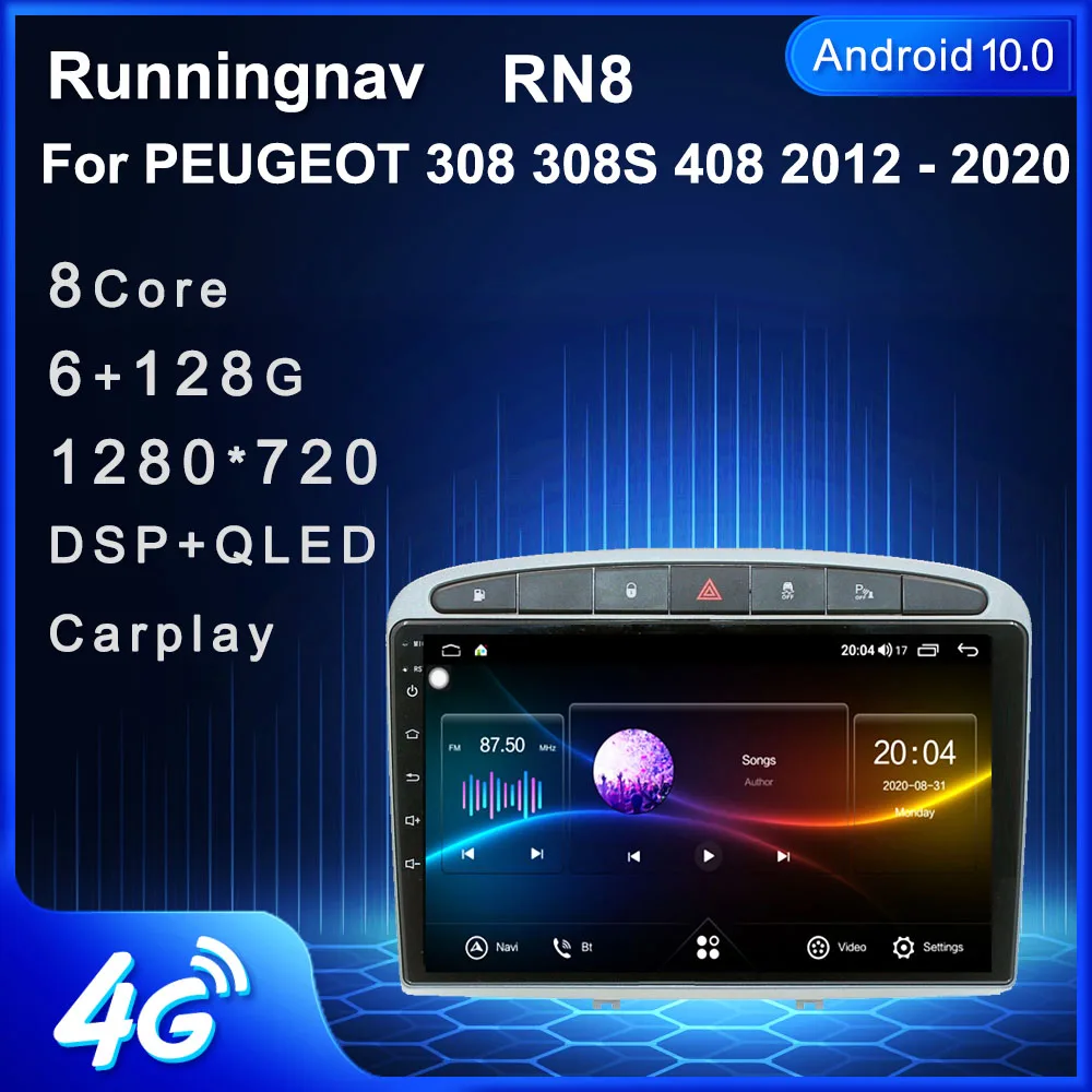 Runningnav для PEUGEOT 308, 308S, 408, 2012-2020, автомобильное радио, мультимедийный видеоплеер, GPS-навигатор