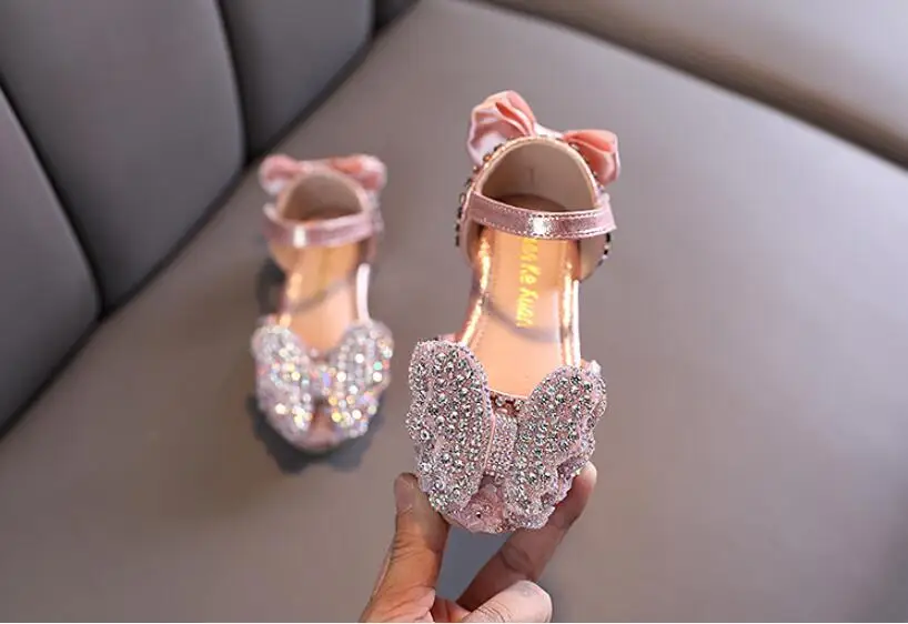 Сандалии со стразами для девочек, Новинка лета 2021, модные сандалии принцессы для маленьких больших девочек, детские сандалии с бантом, детская обувь для шоу