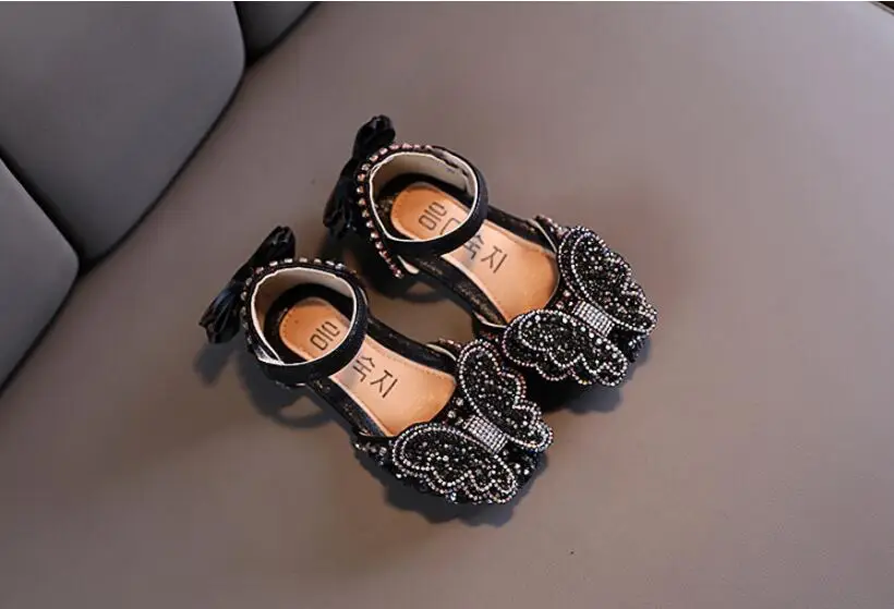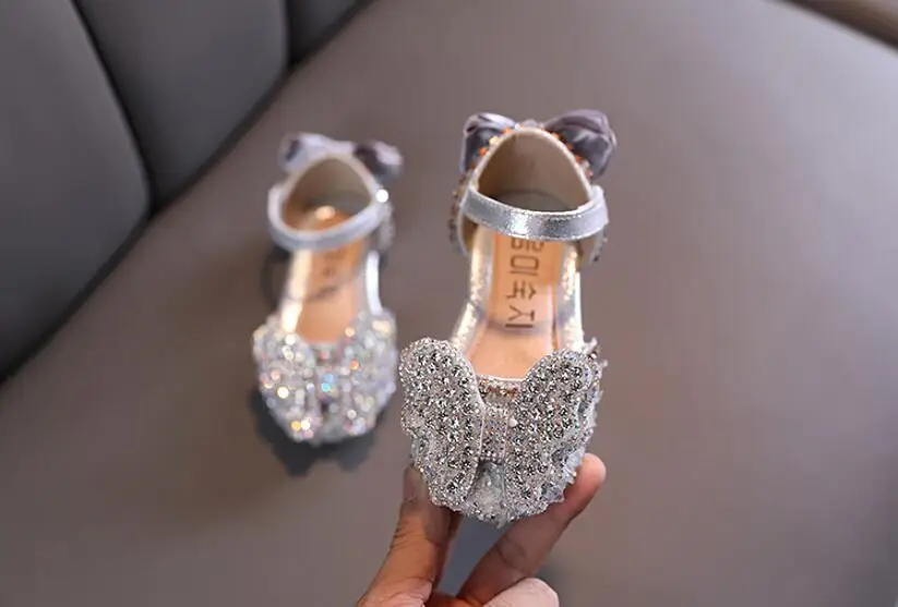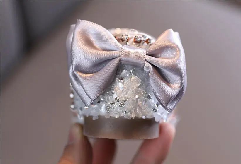 Сандалии детские кожаные со стразами, с бантом и стразами, 2021