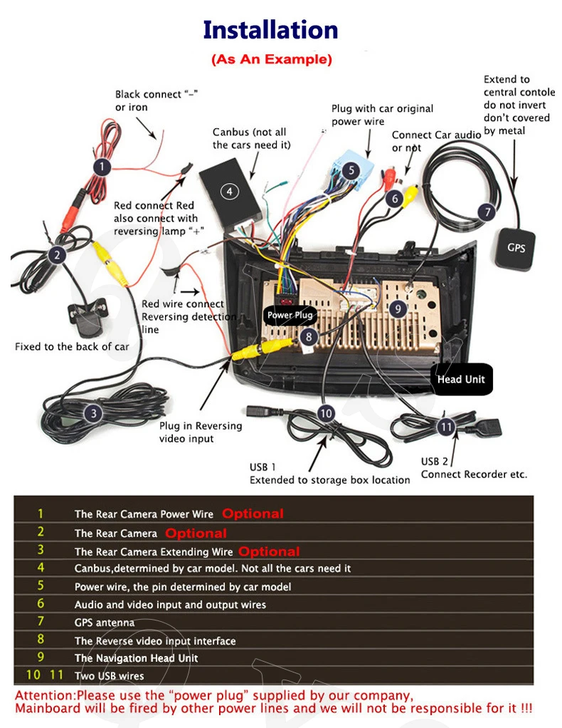 1 X Жгут питания (различные жгуты питания для разных автомобилей)