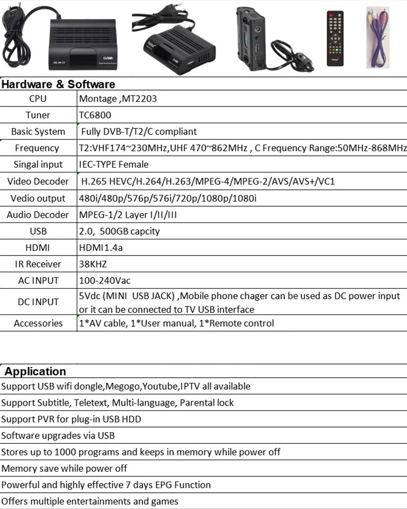 1.DVB-T2/DVB-C прием двойного источника сигнала: большинство стран Европы, Азии, Африки и Австралии могут получать сигналы;