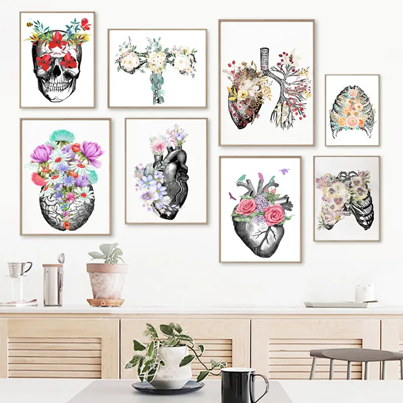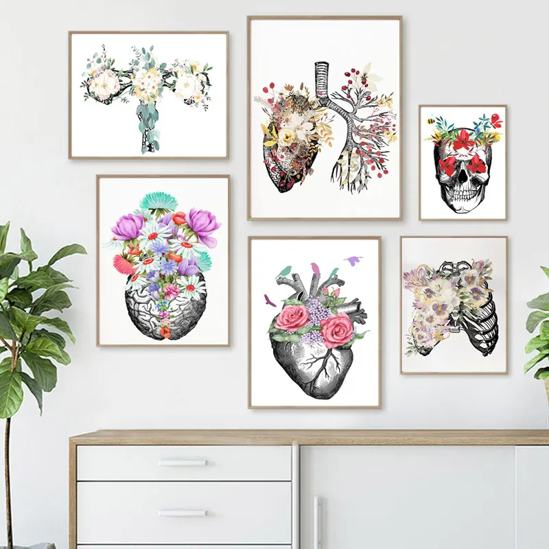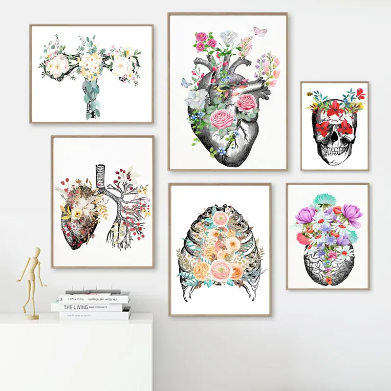 Картины в виде анатомии, цветочных органов, скандинавские плакаты и...