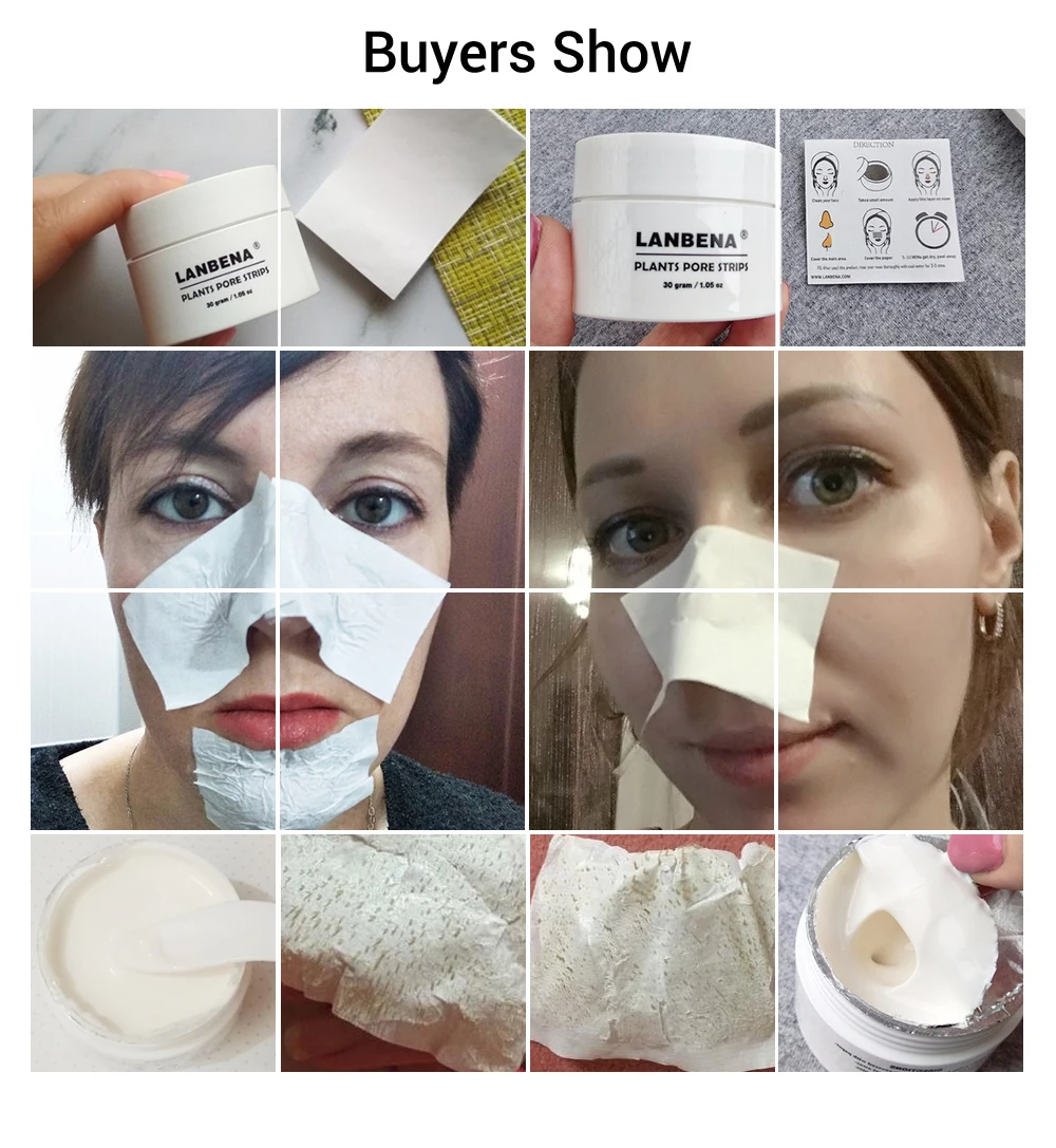 --- Название продукта: LANBENA PlANTS PORE STRIPS Характеристики: 30 г + 60 штук бумаги --- Эффекты: Глубокая чистка. Удалите черную головку. Акне, маска для уменьшения пор. --- Ингредиенты: вода, поливиниловый спирт, желатин, диоксид титана, силикат магниевого алюминия, ФЭ-ноксиэтанол, метилпарабен, гиалуроновая кислота, экстракт алоэ йодию матсу экису, лактат натрия, портака олерацеа, экстракт калия бамбуковый уголь. --- Типы кожи: подходит для различных типов кожи --- Срок годности: 3 года --- Внимание: 1. Только для внешнего использования, Избегайте контакта с глазами и поврежденной кожей, держите ее в тени. 2 эта маска для носа будет скручена под 25С, пожалуйста, положите бутылку в теплую воду, Замочите на некоторое время перед использованием.