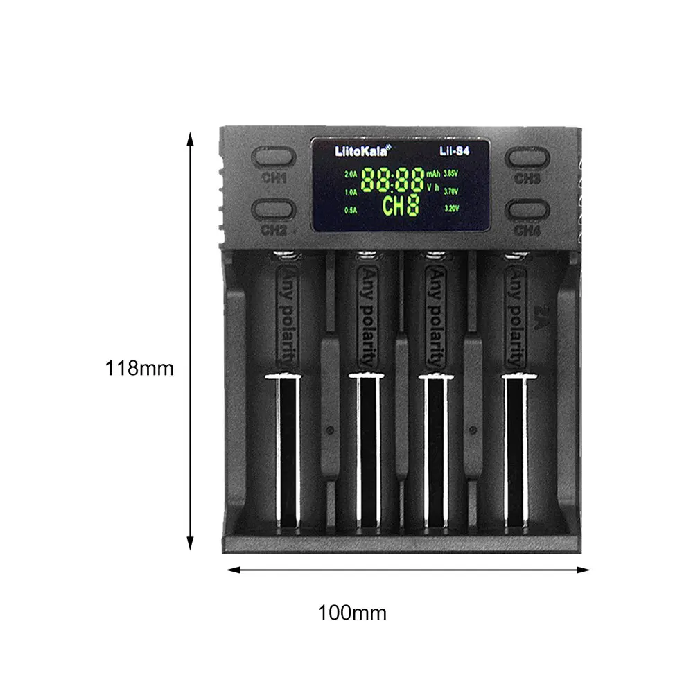 Особенности:1. Мульти-вход питания, 4 независимых слота и каналы зарядки.2. Многофункциональный ЖК-дисплей для зарядки показывает состояние зарядки, тип батареи, емкость зарядки, напряжение и ток.3. Определите Li-Ion и ni-mh автоматически, но, вам нужно отрегулировать режим зарядки для LiFePO4 и 3,85 V Li-Ion батареи.4. Она может активировать 0V перезаряжаемый аккумулятор, но зарядное устройство не берем денег 1,65-2,20 V батарея типа.5. Встроенная защита от перезарядки, защита от перегрузки и защита от полярного реверса. Кроме того, он может идентифицировать сломанный аккумулятор. Описание:1. Это зарядное устройство предназначено для портативного, гибкого и нескольких типов батарей.2. Он может обнаруживать Тип аккумулятора и автоматически заряжать аккумулятор под выбранным вами током зарядки.3. Многофункциональный ЖК-дисплей для зарядки показывает состояние зарядки, а также показывает тип батареи при вставке в батарею. Спецификация:Бренд: LiitoKalaМодель: Lii-S1,Lii-S2,Lii-S4 (опционально)Входная мощность: DC 5,0 V 2AТок зарядки: 0.5A /1.0A/2.0AВыходной ток: li-ion / IMR / LiFePO4 2000mA * 1 (только для слота № 4),1000мА * 2, 500мА * 3 500мА * 4NiMH / NiCd: 1000mA * 2, 500mA * 3 500mA * 4Постоянное напряжение, ток отключения: менее 100 мАТок в режиме ожидания: менее 15 мАВыходное напряжение:DC 4,20 V для li-ionDC 4,35 V для IMRDC 3,65 V для LiFePO4DC 1,50 V для NiMH/NI-CdСовместимые типы батарей:Li-ion / IMR/LiFePO4: 26650,21700,20700, 18650, 18490, 18350, 17670, 17500, 16340(RCR123), 14500, 10440NiMH/Cd: AA, AAA,SC, CРазмер: 118 мм × 100,0 мм × 30,0 ммВес: 136,4 г Посылка включает в себя:Зарядное устройство-1 шт.1 х USB кабель