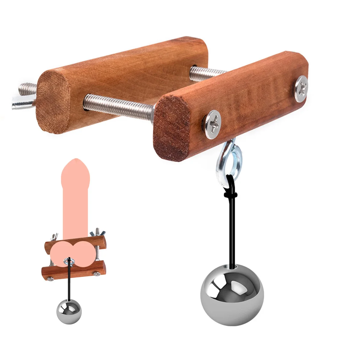 Деревянный устройство CBT для мужской яичко дробилка мошонки кулон шар Секс-игрушки растяжки для яичек металлический шарик пенис Вес обучение