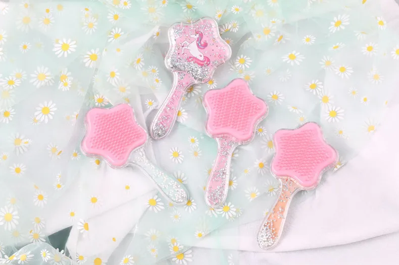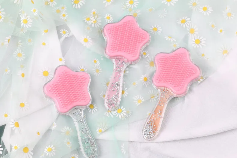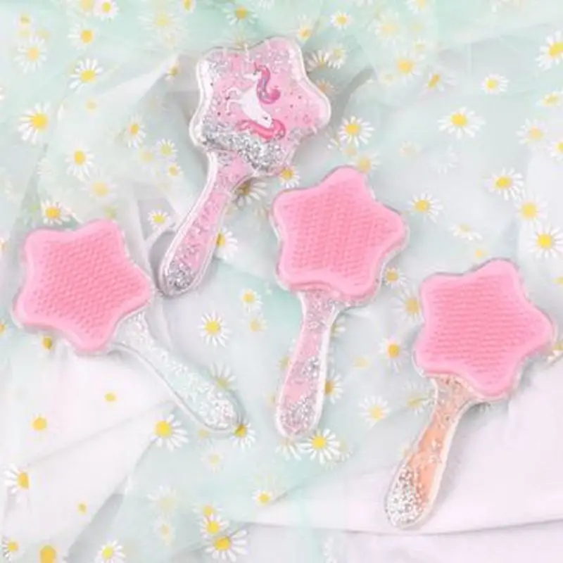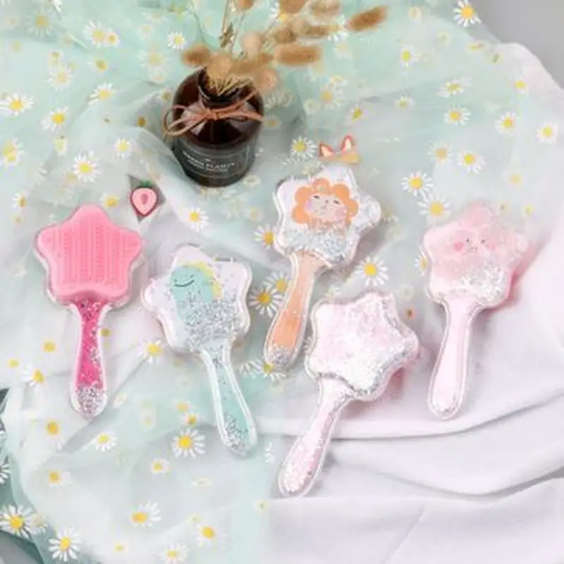 Расческа с блестками, массажная детская подушка с зыбучим песком, массажная расческа, милый гребешок для девочки, длинная расческа для волос с бантиком, расческа для волос