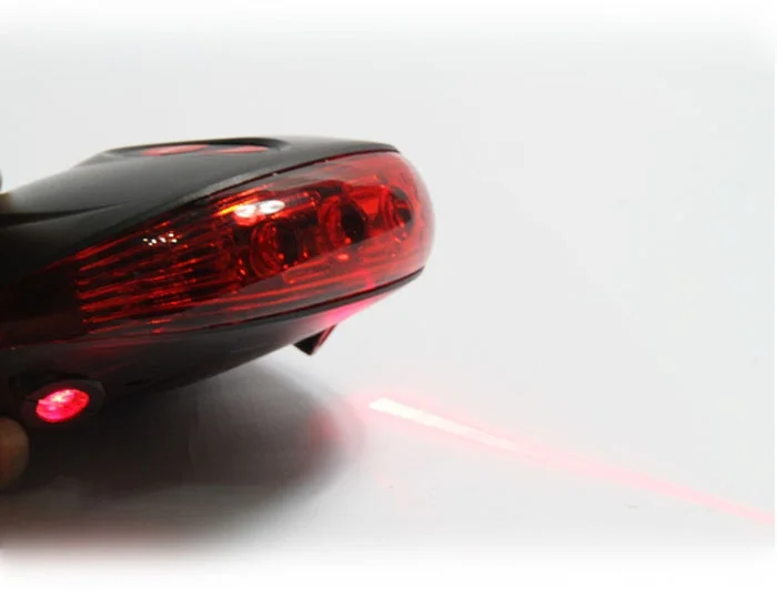 Велосипедный лазерный прожектор с 2 красными лампами и 3 светодиодными задними фонарями (Цвет: Красный)