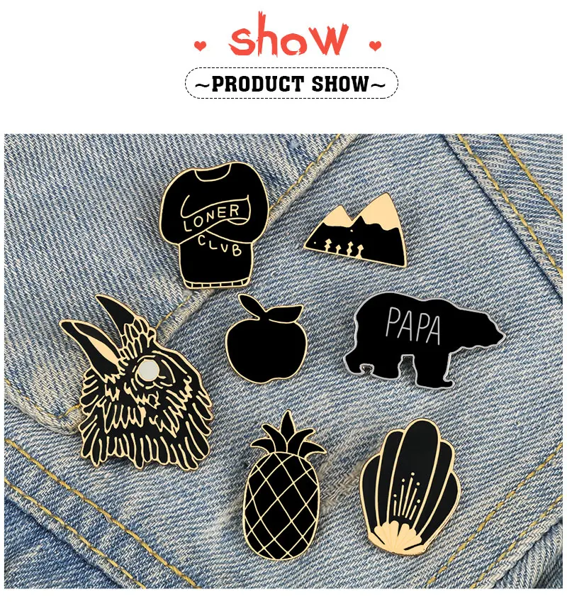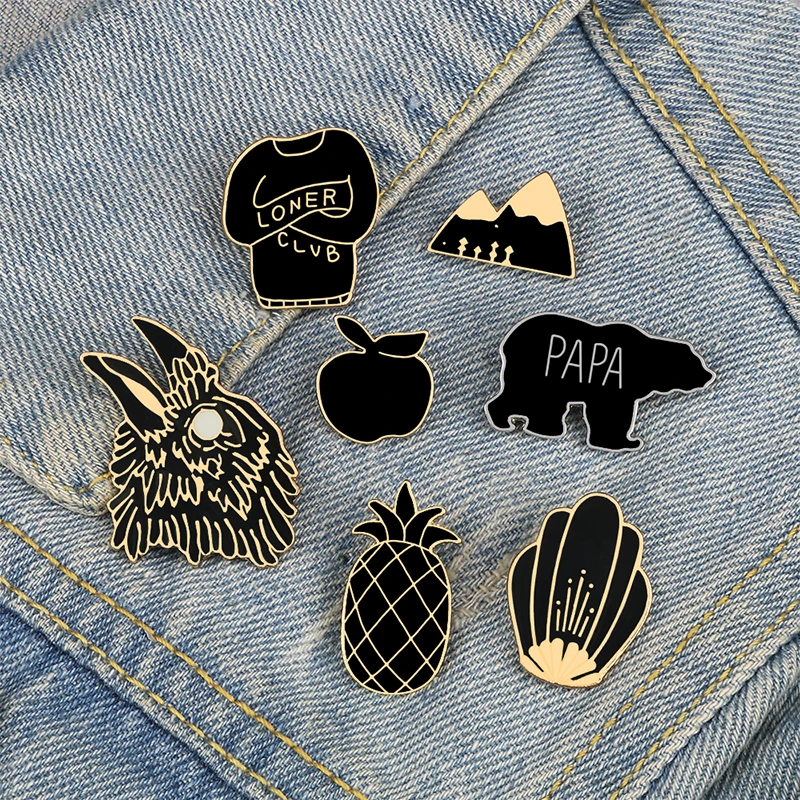 Темная черная брошь в стиле панк Лонер клуб Орел Гора ананас яблоко эмалевые значки заколки аксессуары Сумка Одежда лацкан булавка ювелирные изделия