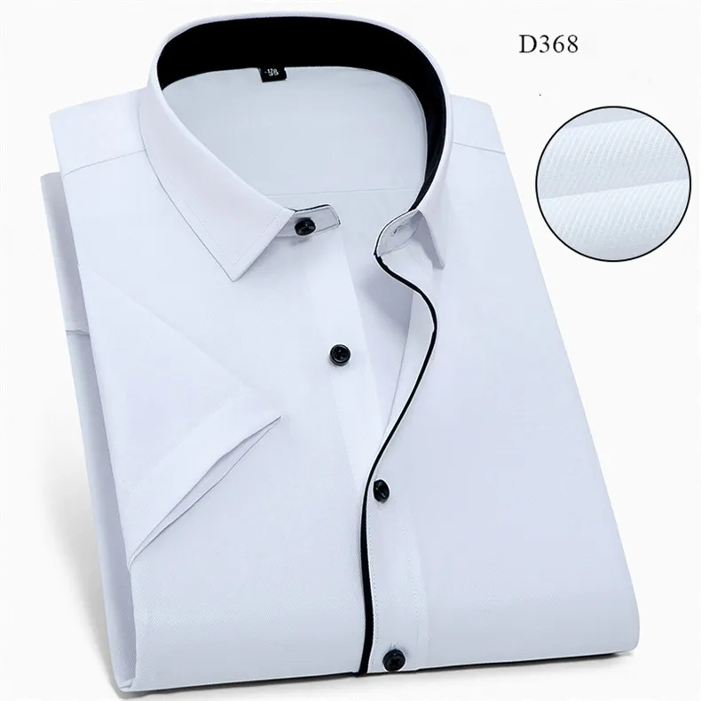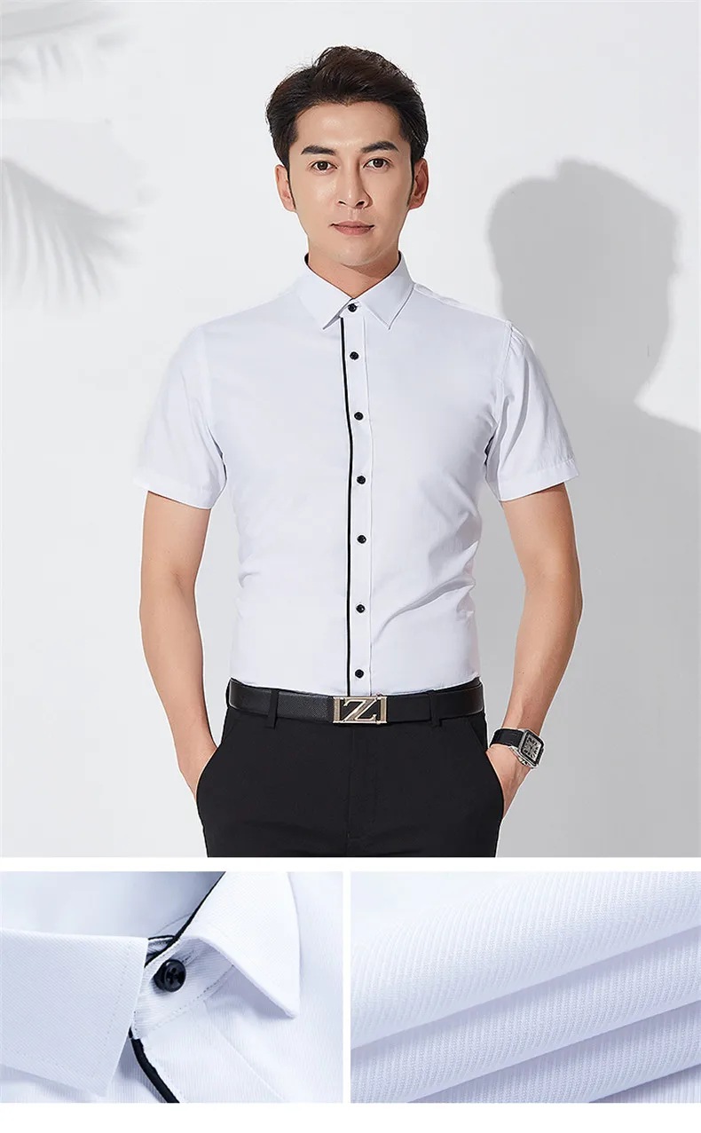 Рубашка мужская формальная с коротким рукавом, однотонная саржевая Классическая рубашка без переднего кармана, цвет белый светильник голубой, на лето