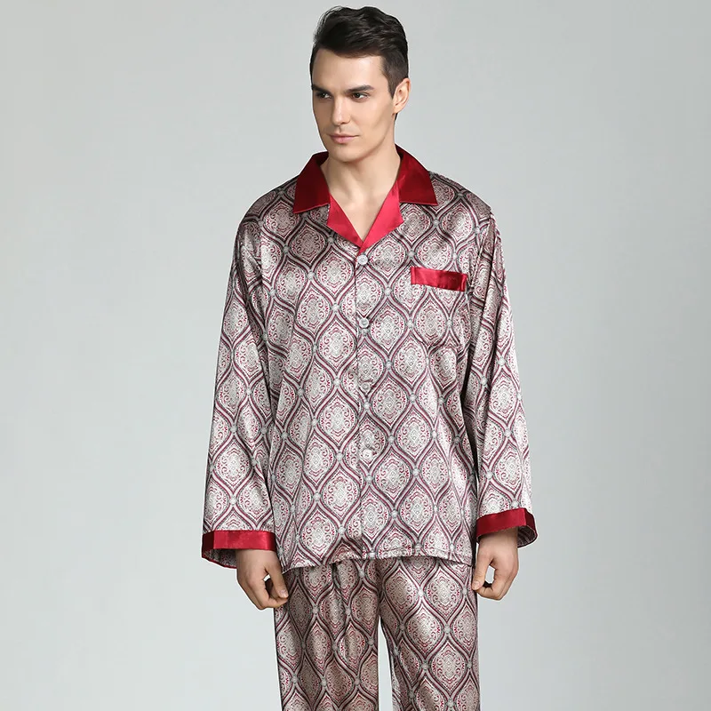 Повседневное пижамы Для мужчин Пижама, комплект из 2 предметов для мальчиков: рубашка и штаны атласная ночная рубашка из искусственного шелка с принтом пижамы мягкий Пижамный набор интимное белье