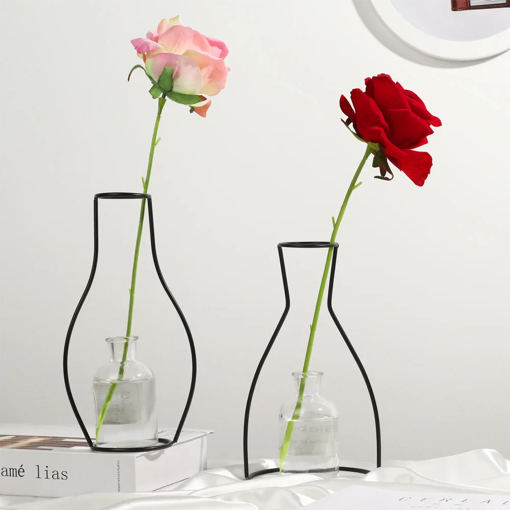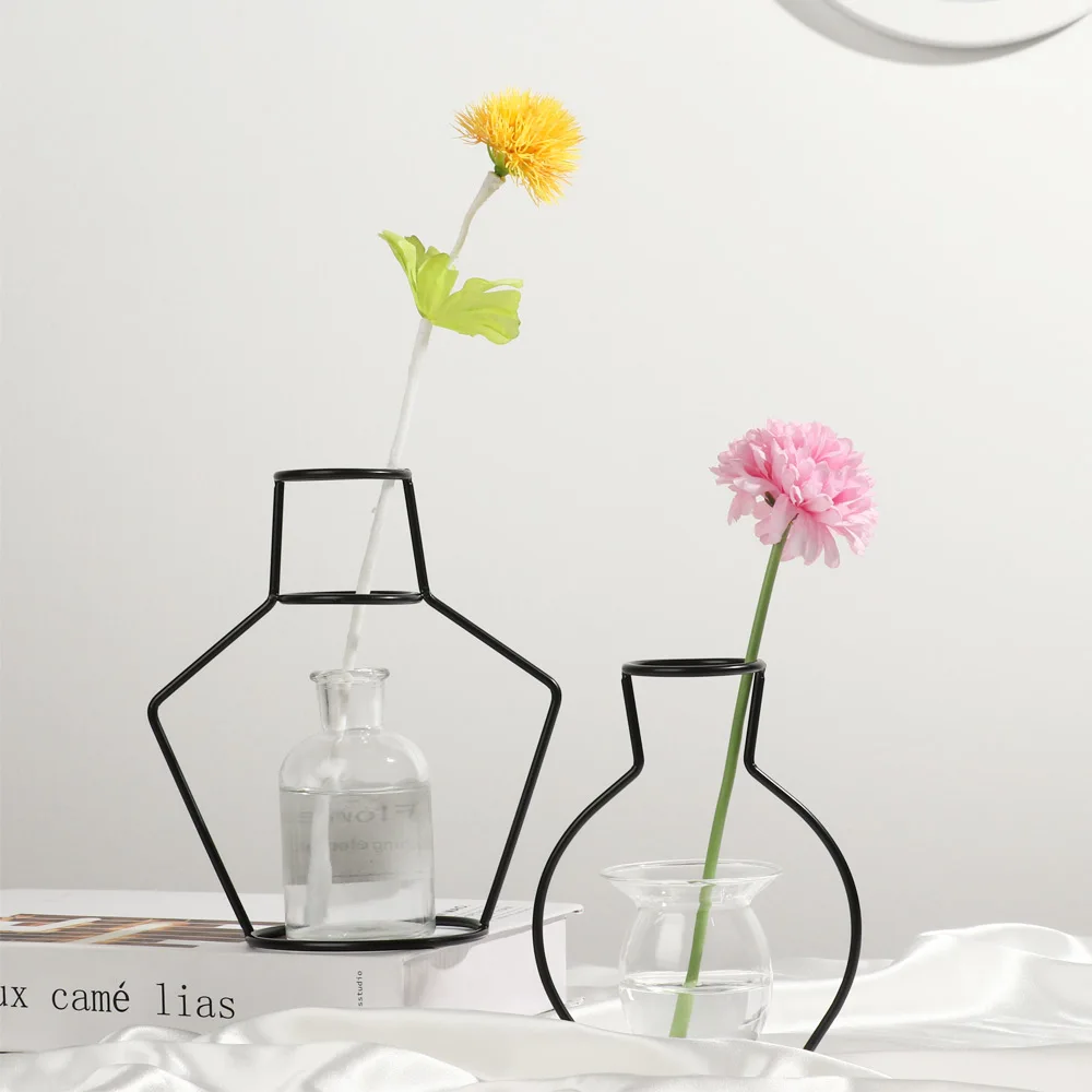 Черная Железная ваза для цветов, металлический держатель для растений в скандинавском стиле, железная ваза, орнаменты, оригинальное украшение для вечеринки и дома, товары для творчества