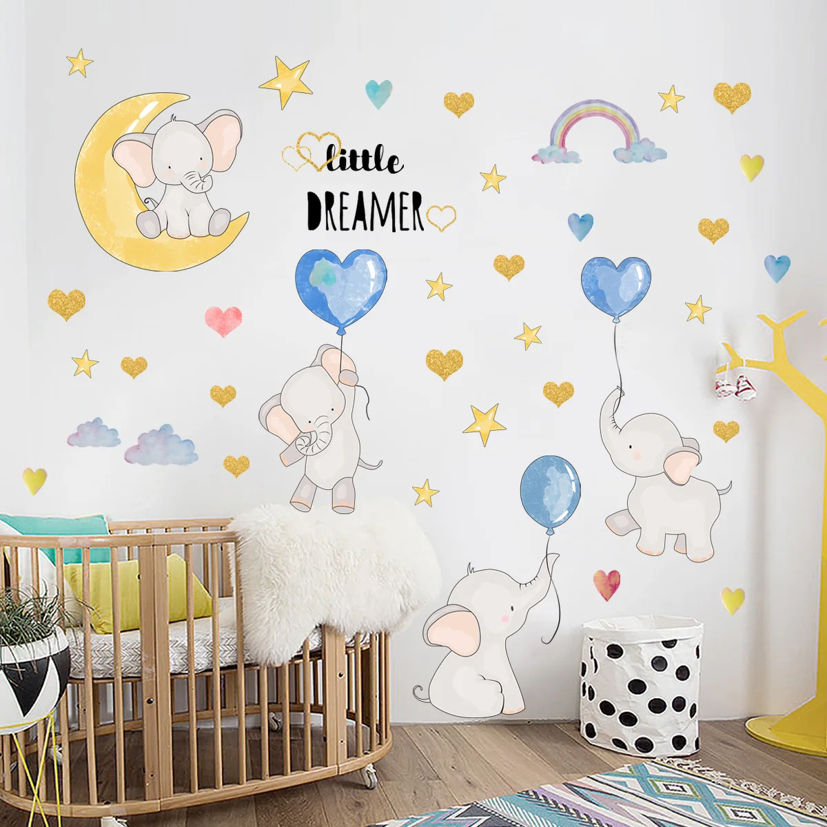 Новинка, Мультяшные радужные наклейки на стену с изображением слона, воздушных шаров, для детской комнаты, гостиной, спальни, декоративные наклейки на стену