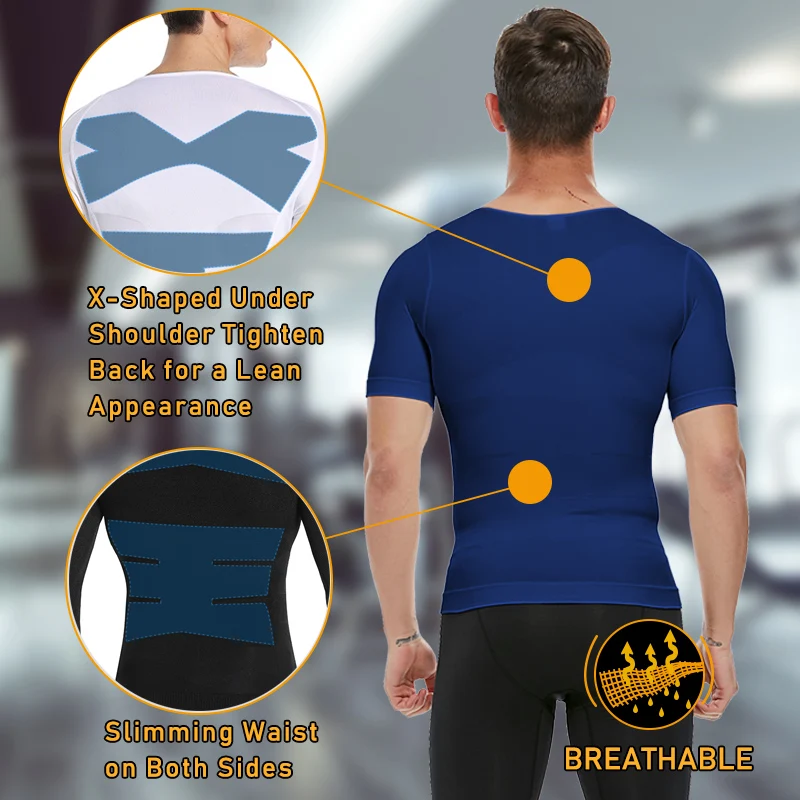 Для мужчин для похудения Body Shaper жилет пластика Управление осанки рубашка задней исправление Abdo Для мужчин майка размера плюс для похудения Весна