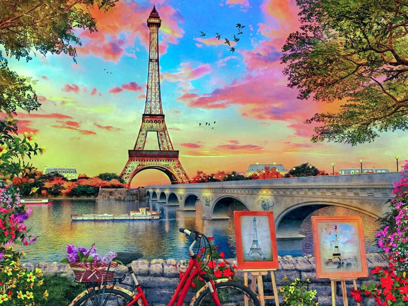 5D алмазная живопись с изображением Эйфелевой башни пейзажа, полная выкладка, пейзаж Города Парижа, мозаика, алмазная вышивка, вышивка крестиком, искусство стразы icon star icon star icon star icon star icon star