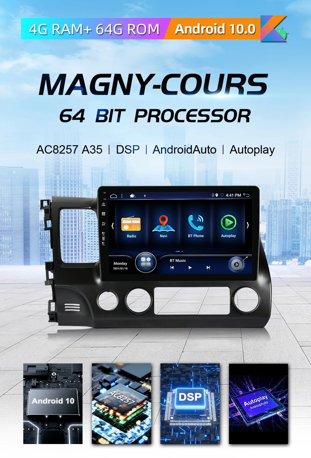 Автомагнитола 2din на Android 10 DSP для Honda Civic 8 FK FN FD 2005-2012, мультимедийный видеоплеер, навигация, Android, без dvd, 4G, 1 din