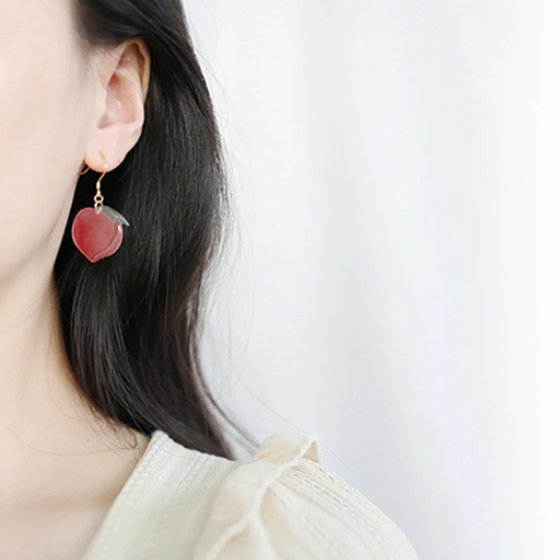 Серьги из смолы в форме сердца и персика женские, характерные Прост...