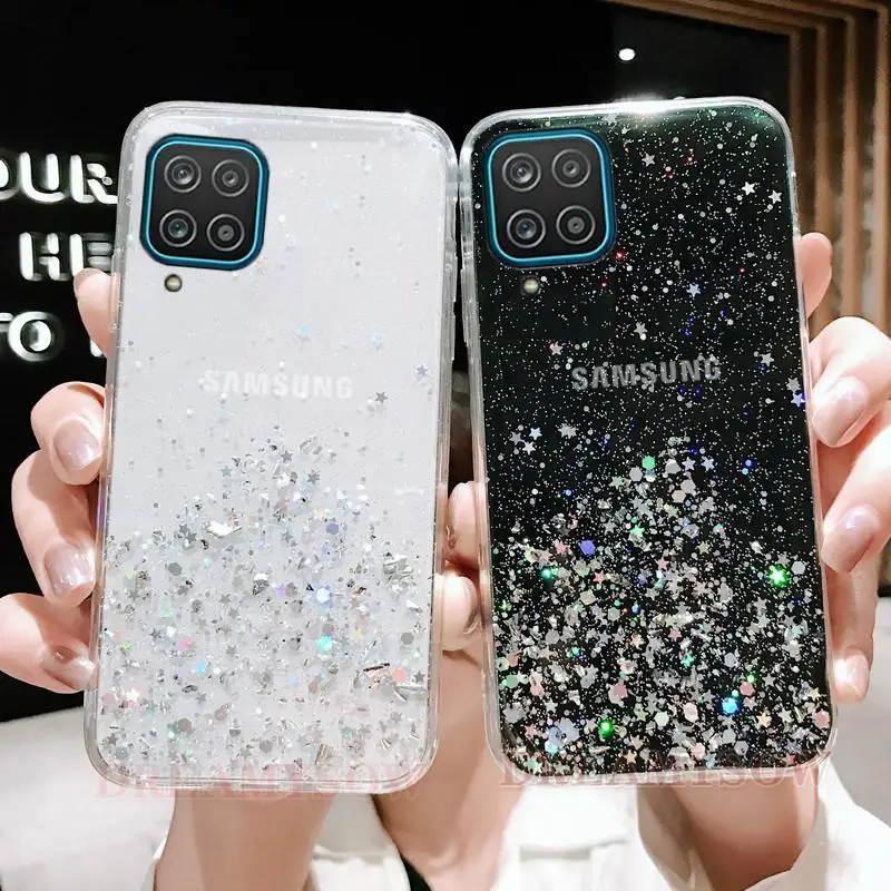 Силиконовый чехол для Samsung Galaxy A12 A32 A42 A52 A72 5G с блестящими звездочками чехол для телефона для Samsung A02S M30S M21 M31 M51 Мягкий ТПУ чехол с мультипликационным рисунком