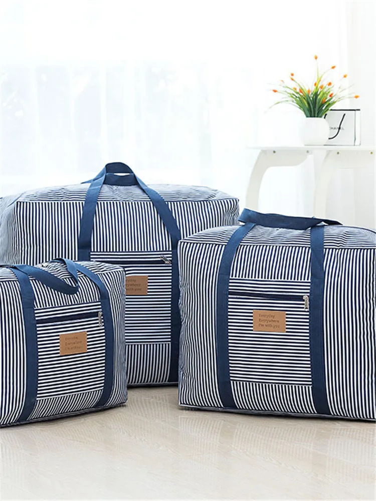 Белого и синего цвета в полоску сумка для хранения прочной рубашечной ткани Органайзер Dormistory путешествия перемещение Портативный одежда упаковка пылезащитный чехол