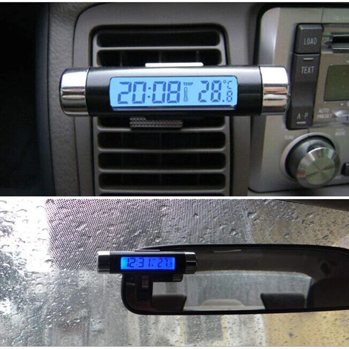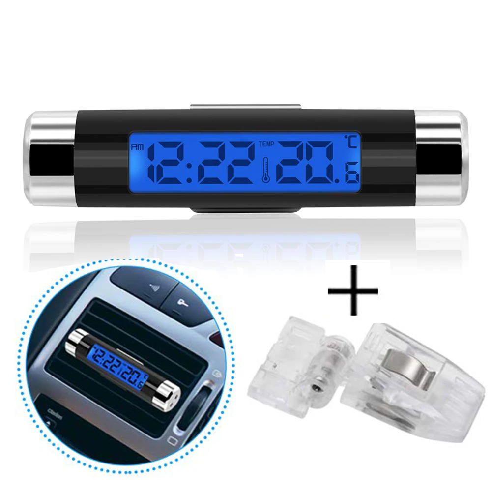 Горячая Распродажа 2 в 1 автомобильные часы, термометр, ЖК-дисплей, Синяя подсветка автомобиля, автомобильный термометр, часы, календарь с зажимом