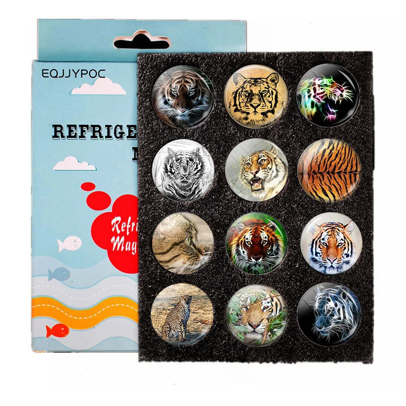 Тигр набор магнитов на холодильник коробка 30 мм стеклянный купольный кабошон наклейка на холодильник магнитная мода домашний декор сувенир подарок
