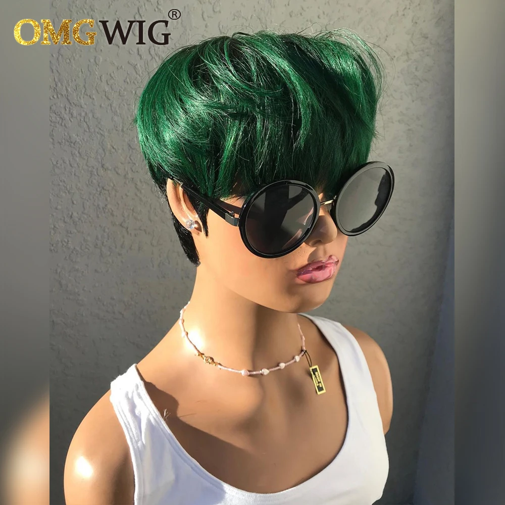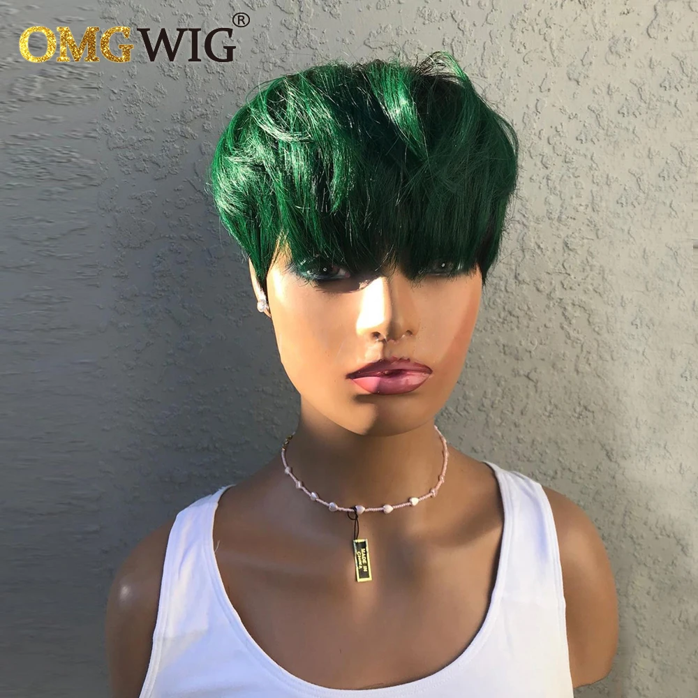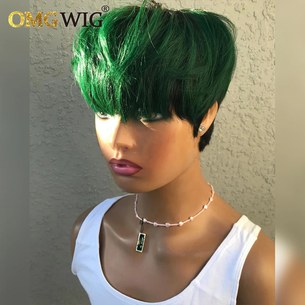Короткие парики зеленого цвета Омбре для женщин, прямой парик Боб с челкой, бразильские волосы без кружева спереди, дешевые бесклеевые парики
