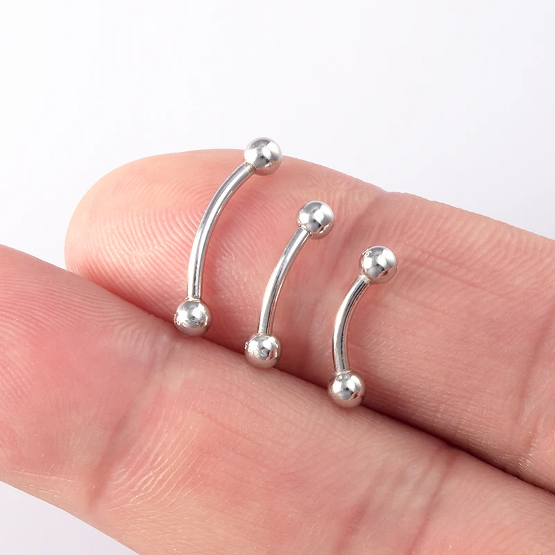 1 шт. 925 пробы серебро бровей изогнутый пирсинг со штангой банановое кольцо жемчужины язык Daith Козелка спираль бар, серьги, ювелирное изделие, 16G