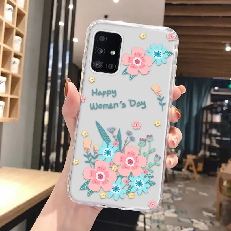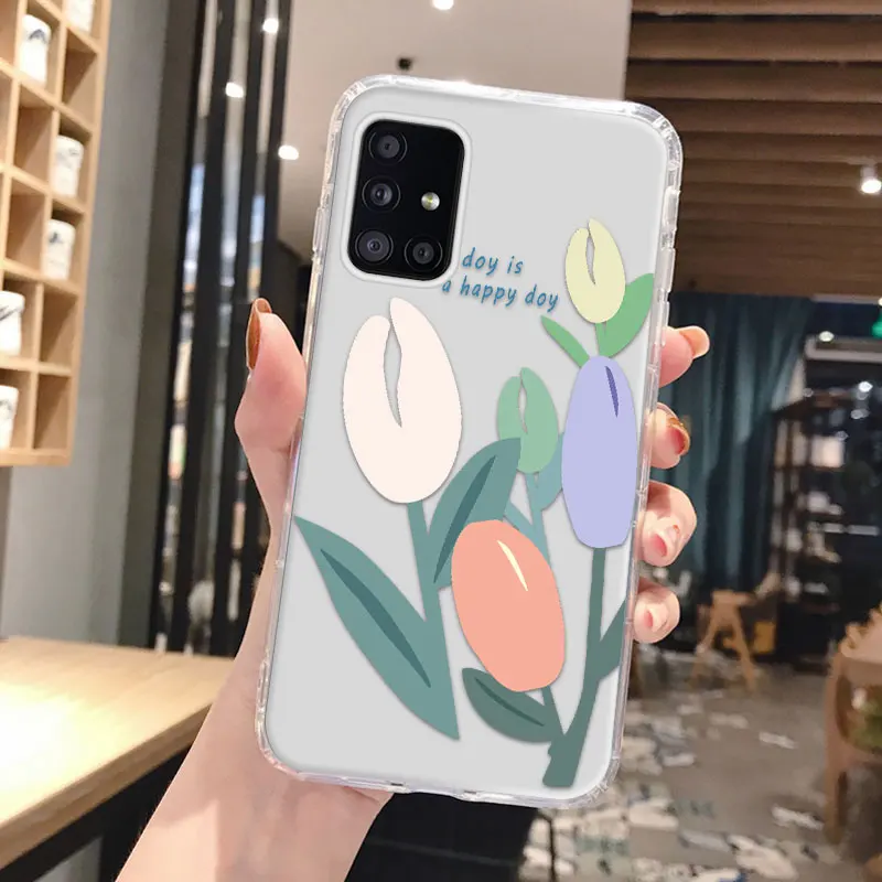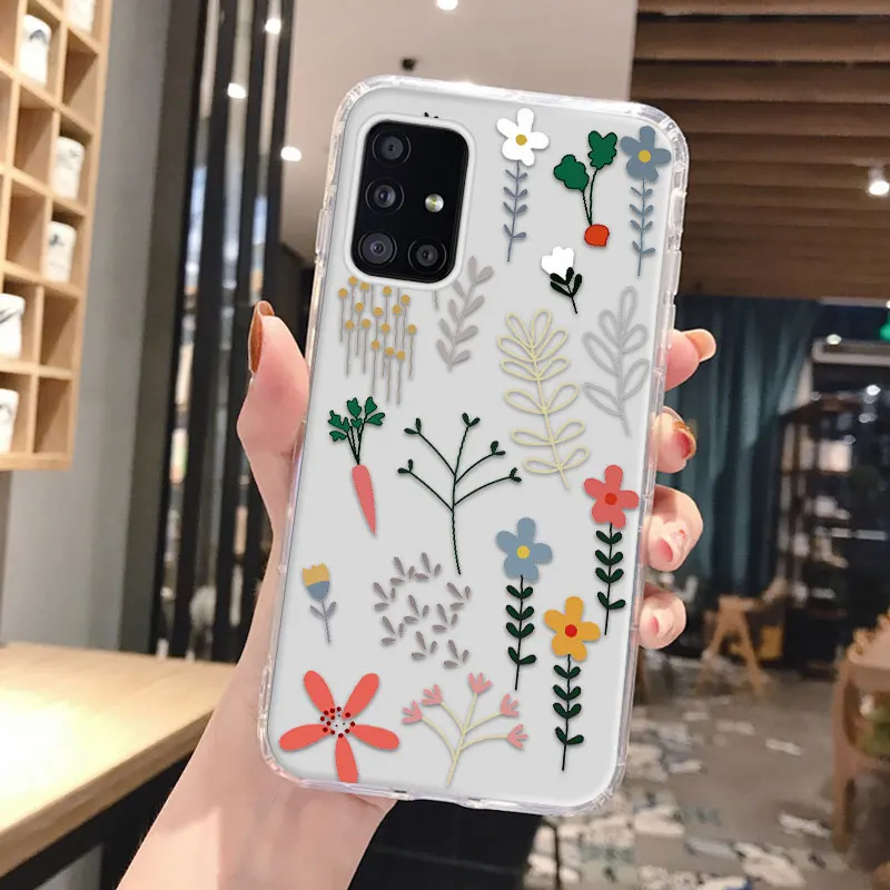 Прозрачный чехол с цветами для Samsung A51 A71 A32 A52 A72 Funda для Samsung A12 A31 A21S A30 A20 A50S A30S, чехол для телефона из мягкого ТПУ