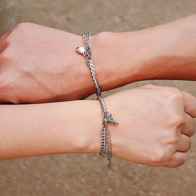 Браслет для влюбленных из нержавеющей стали 100%, регулируемый браслет с магнитом, притягивающим сердце, браслет на большие расстояния, спаренный кулон, браслет, подарок для влюбленных