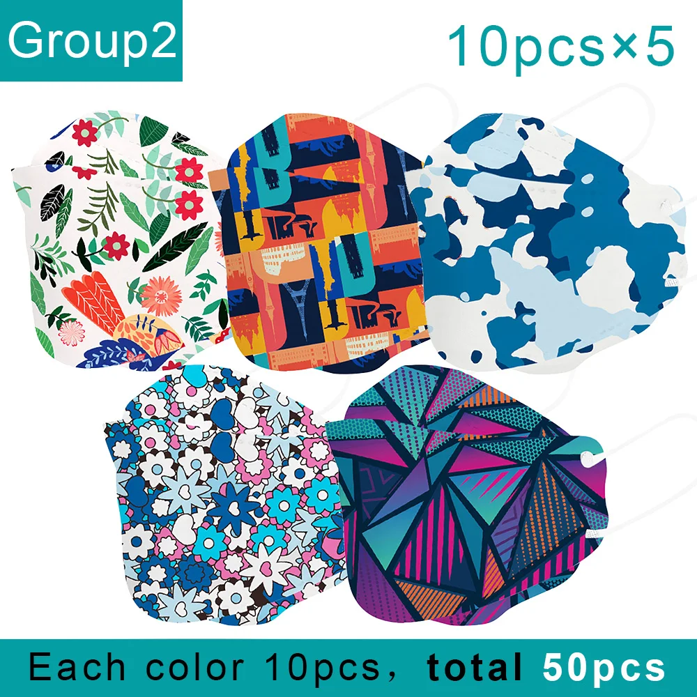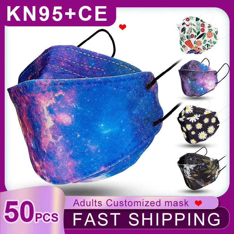 Маска 4-слойная Нетканая с принтом Fish KN95, 50 шт.