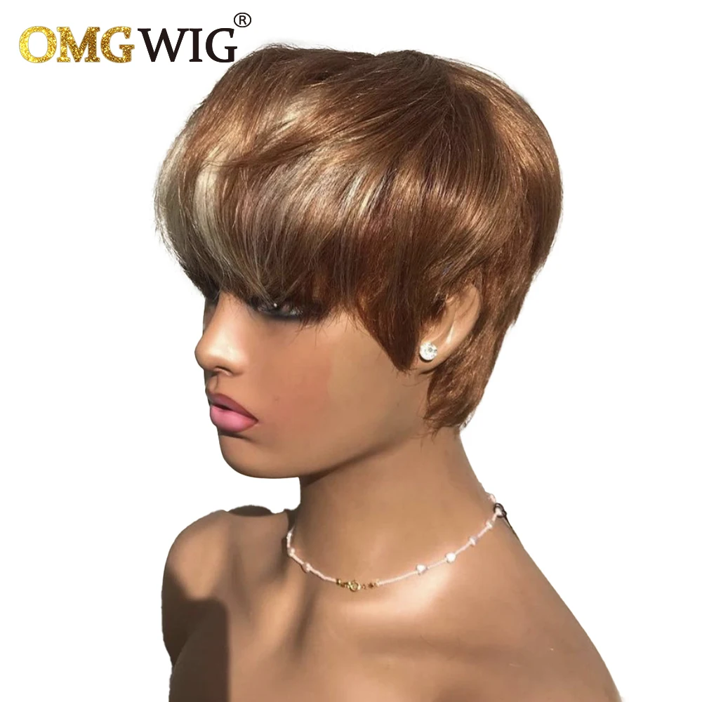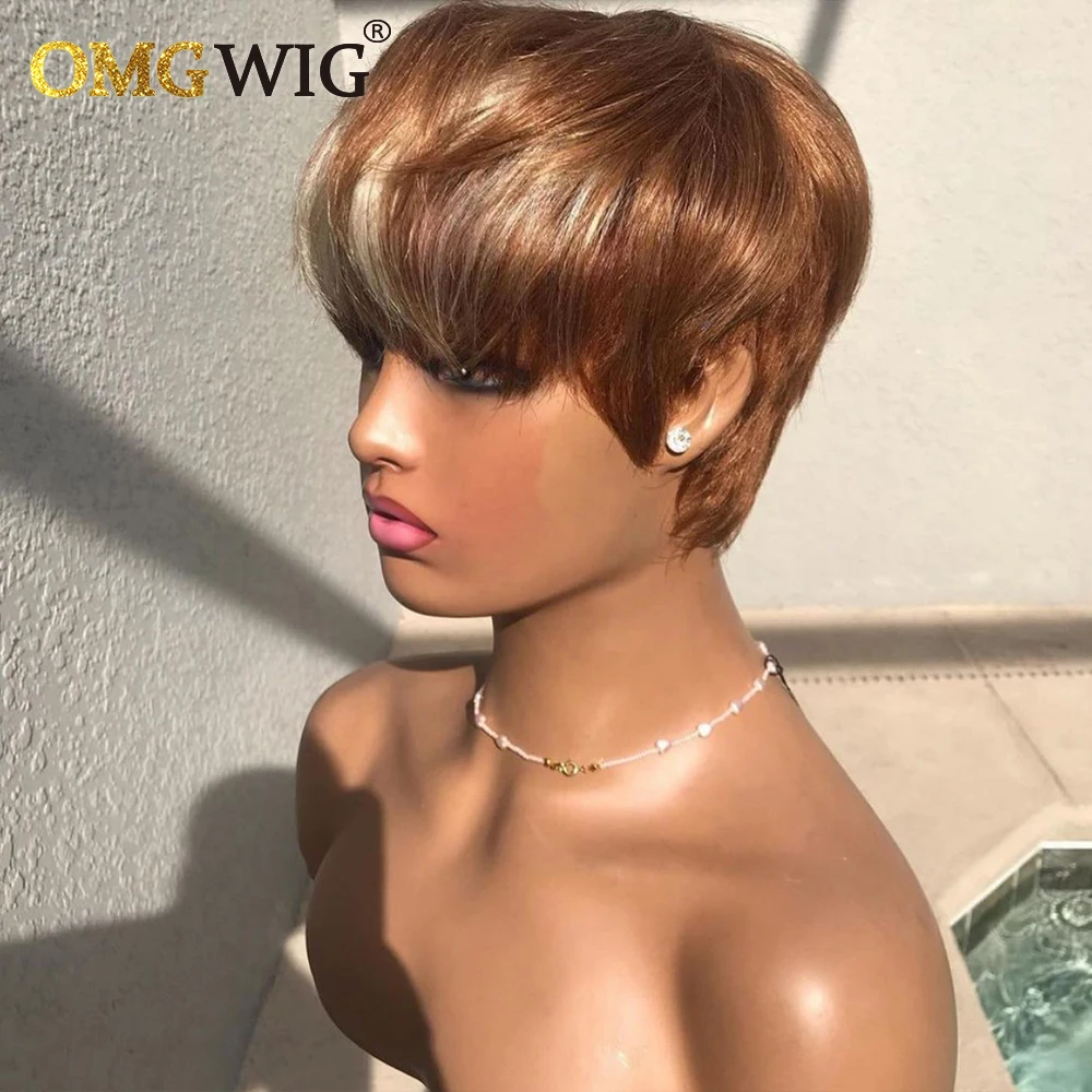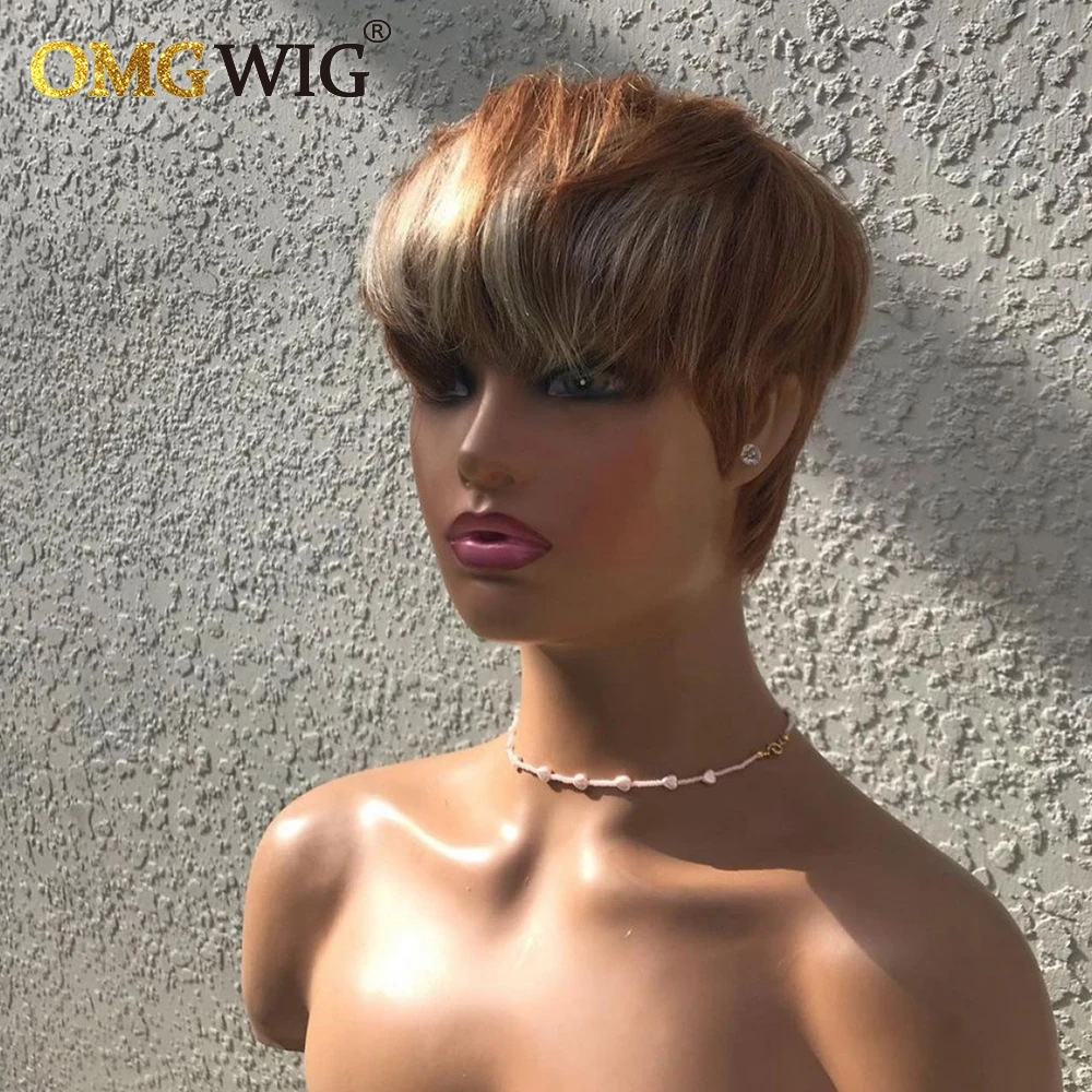 Оптовая продажа Омбре Цвет Короткие парики для женщин бразильские человеческие волосы без кружева передний боб парик с челкой парик Пикси Натуральные Прямые Волосы