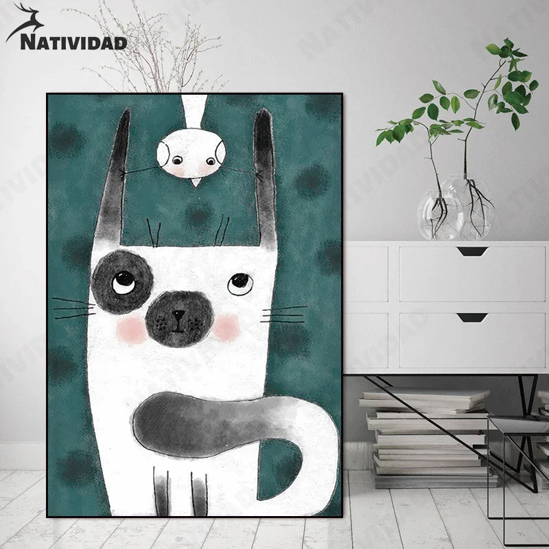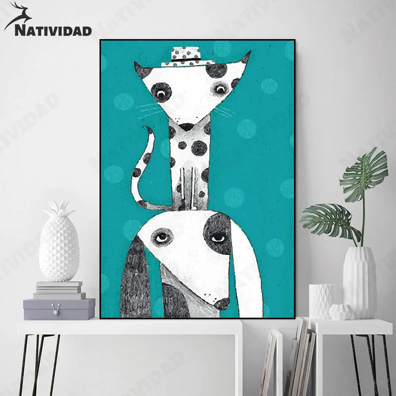 Картина мультяшная художественная на холсте, постер с изображением японских кошек и собак для детей, домашний декор для гостиной и детской комнаты