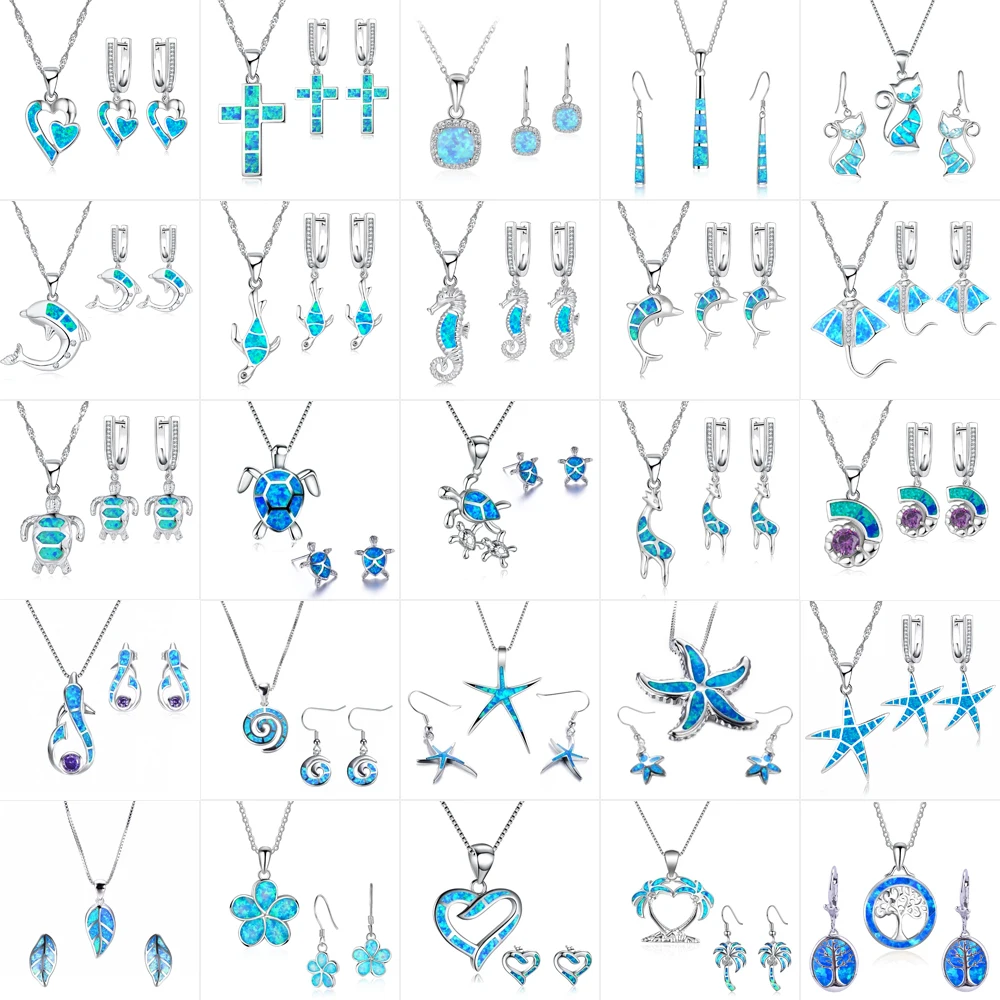 Модный Опал Набор украшений для женщин Имитация синего огненного опала огранка Черепахакошка кулон ожерелье серьги ювелирные изделия