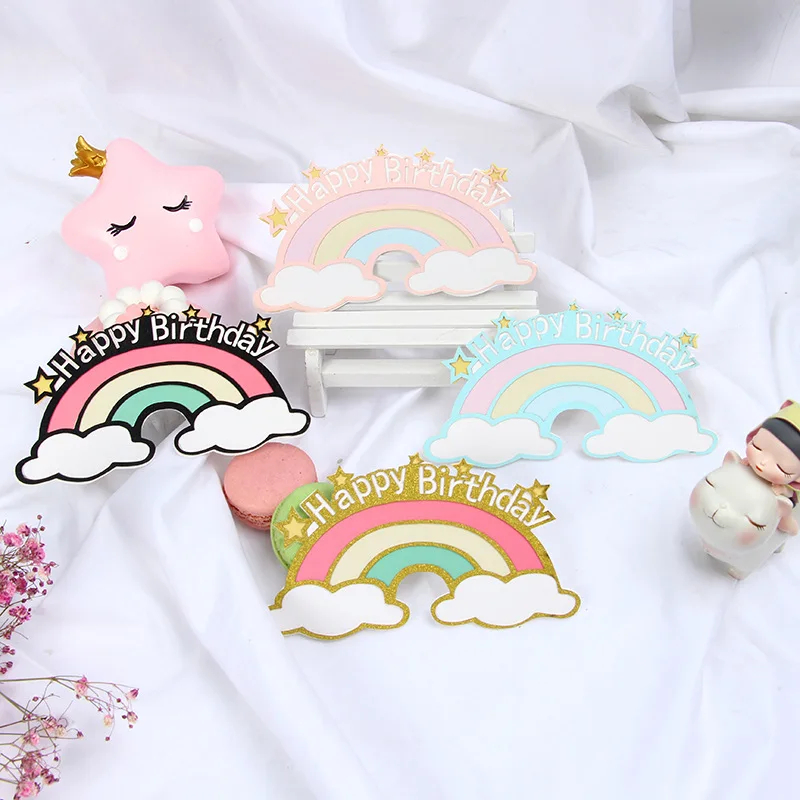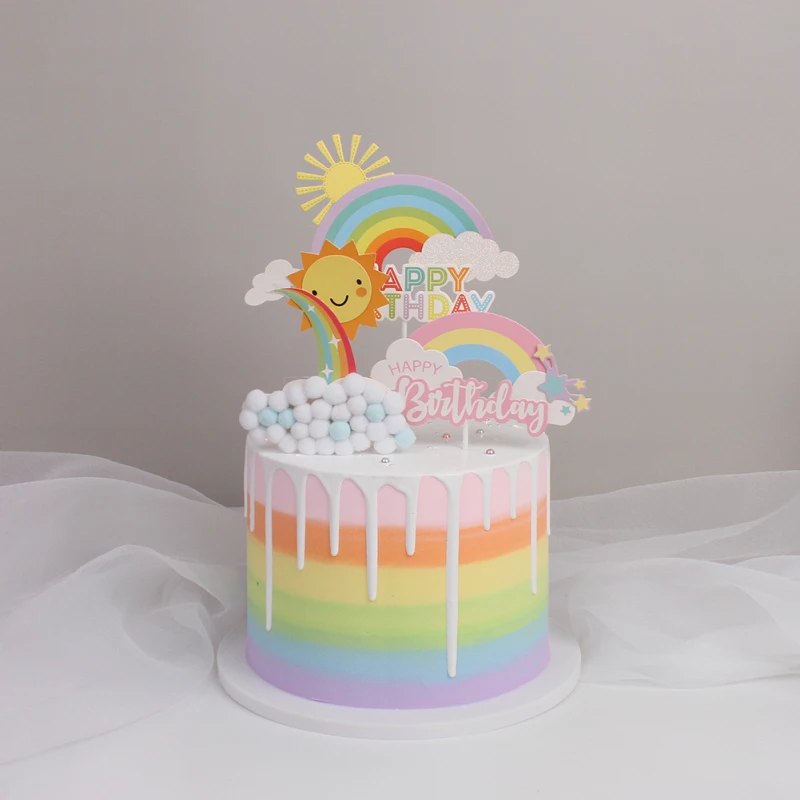 Топпер для торта, радуга, звезды, солнце, облака, с днем рождения, свадебное украшение невесты, декор кекса, вечеринка, детский душ, товары для выпечки, Новинка