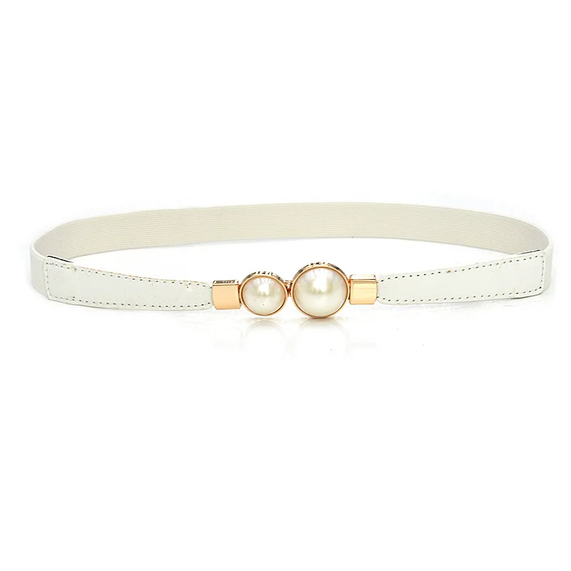 Женский двойной жемчужный ремень, однотонный эластичный пояс из искусственной кожи, тонкий пояс для платья, юбки, декоративные пояса, подарки для девочек