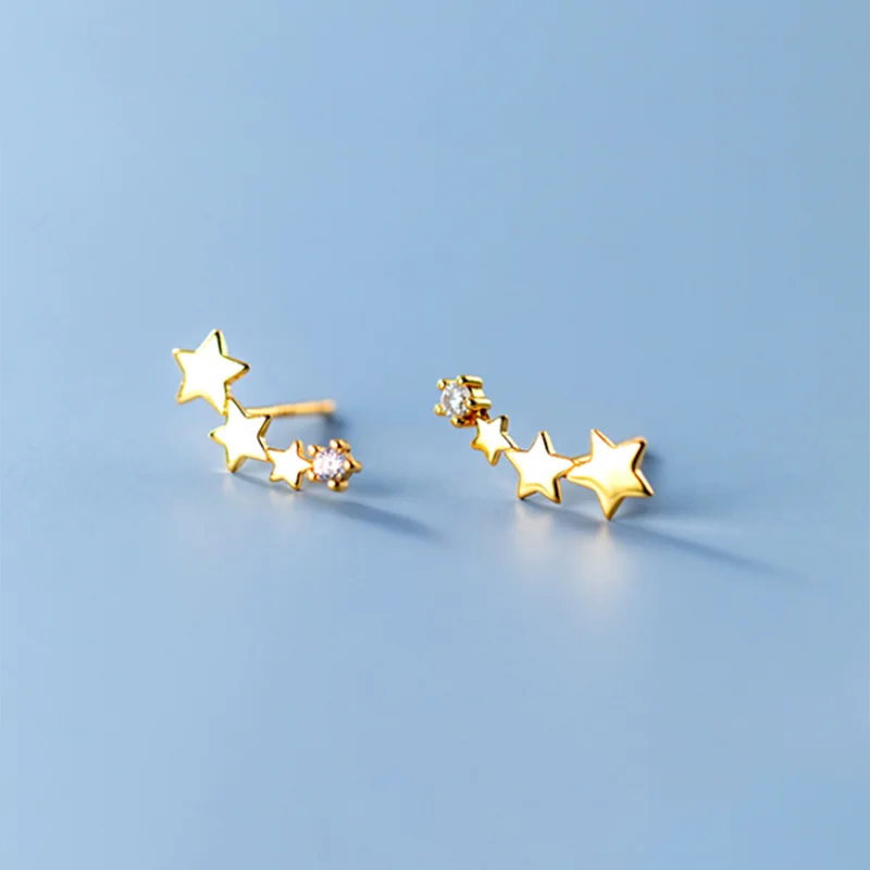 WANTME натуральная 925 стерлингового серебра романтическая звезды геометрической формы в Корейском стиле, серьги-гвоздики для женщин подростков на день рождения вечерние пирсинг ювелирные изделия