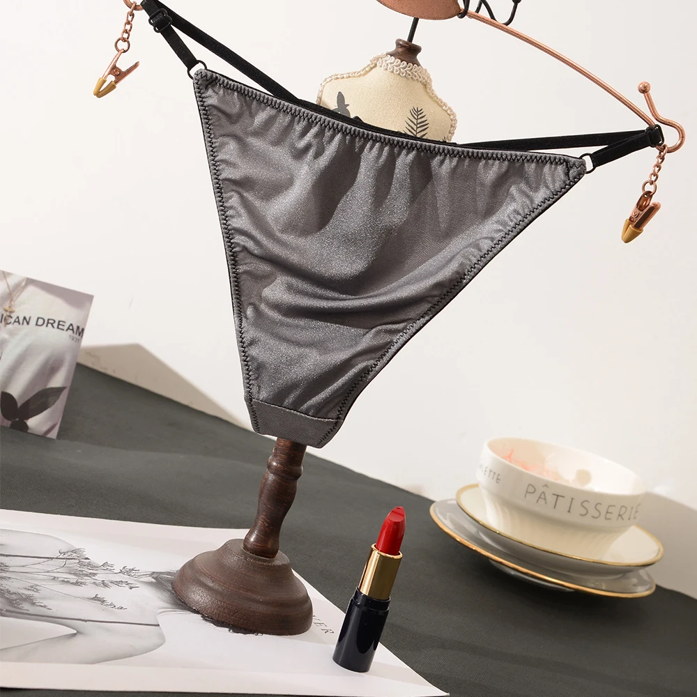 Трусики-стринги женские, бесшовные, из сатина, с бантом