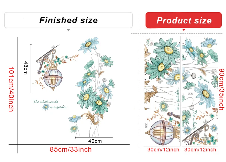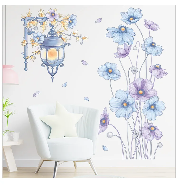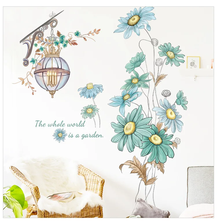Скандинавские зеленые цветы, настенные наклейки для гостиной, спальни, гардероба, Декор, виниловая ПВХ плитка, настенные наклейки, домашний декор, фрески для крыльца