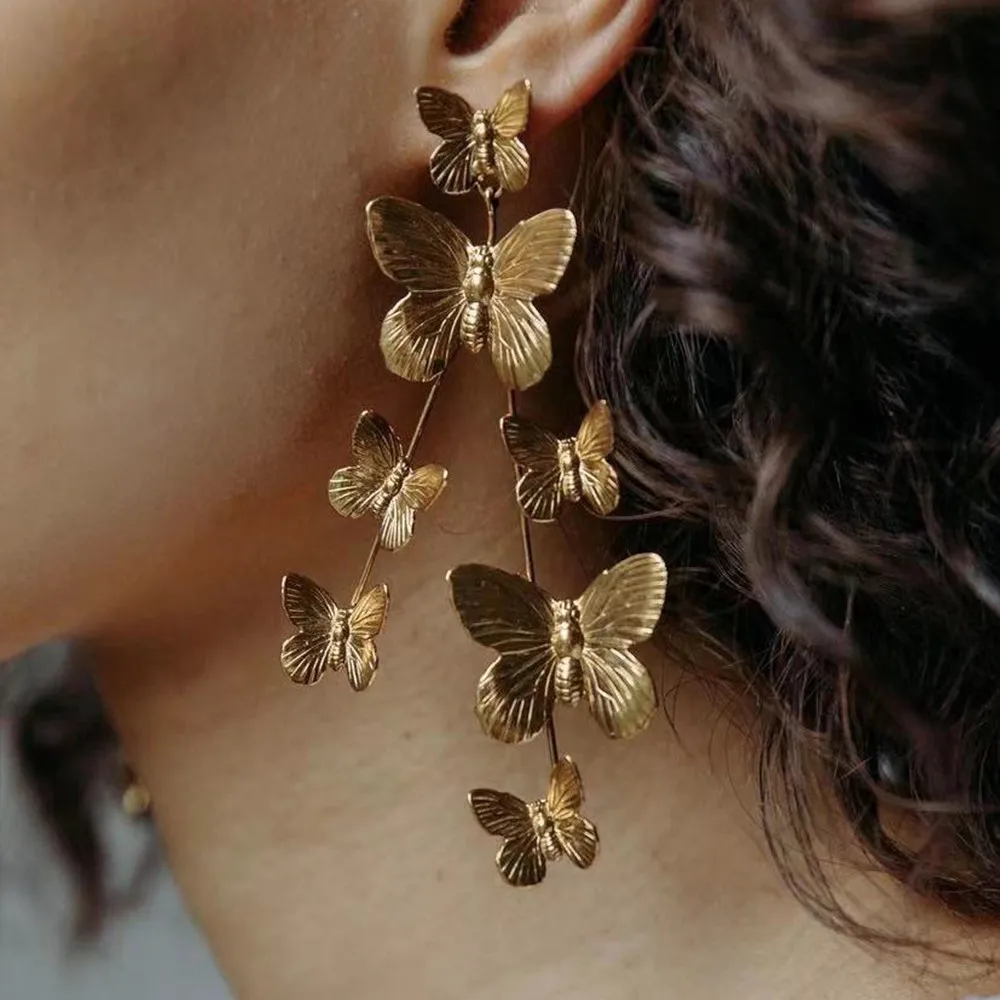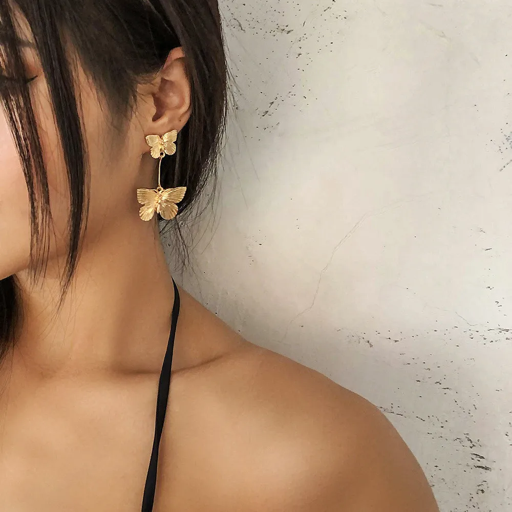 INS Meatl золотые серьги-подвески в виде большой бабочки, Ювелирное Украшение для ушей для женщин, Роскошная подвеска и серьги-подвески в виде бабочки из сплава, аксессуары