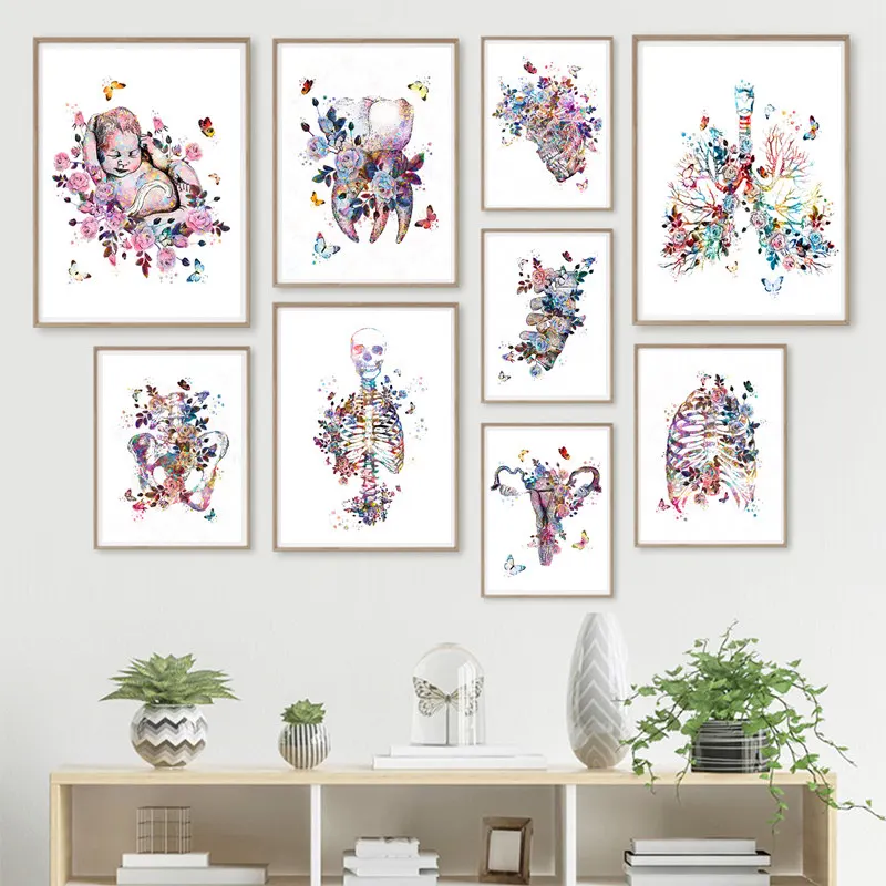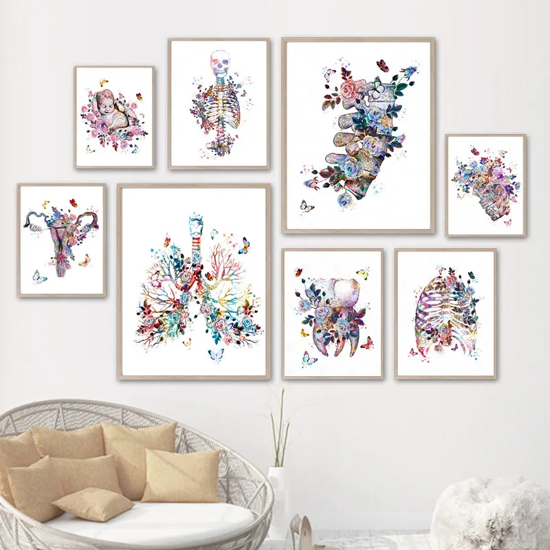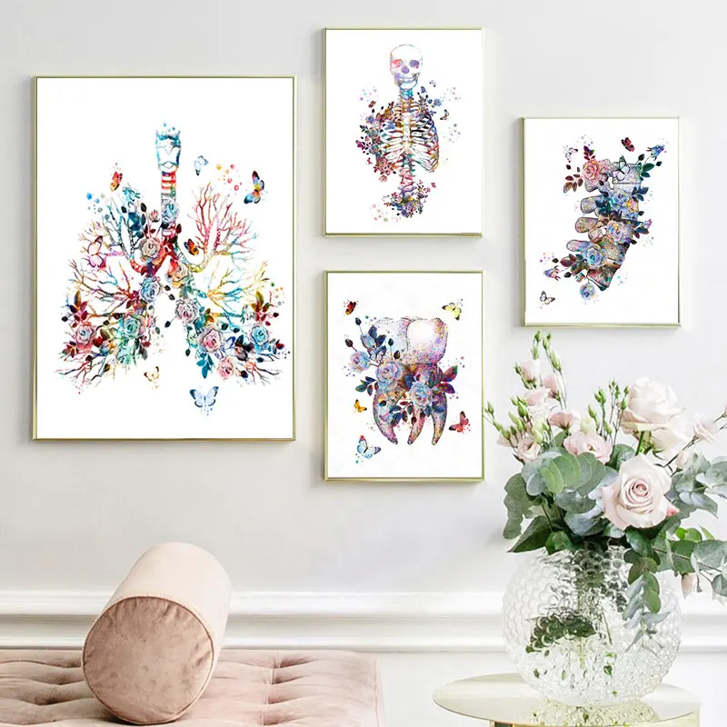Цветок Органы Wall Art Картины анатомический скелет холст картины Nordic Плакаты и принты настенные картины для доктор офисный Декор